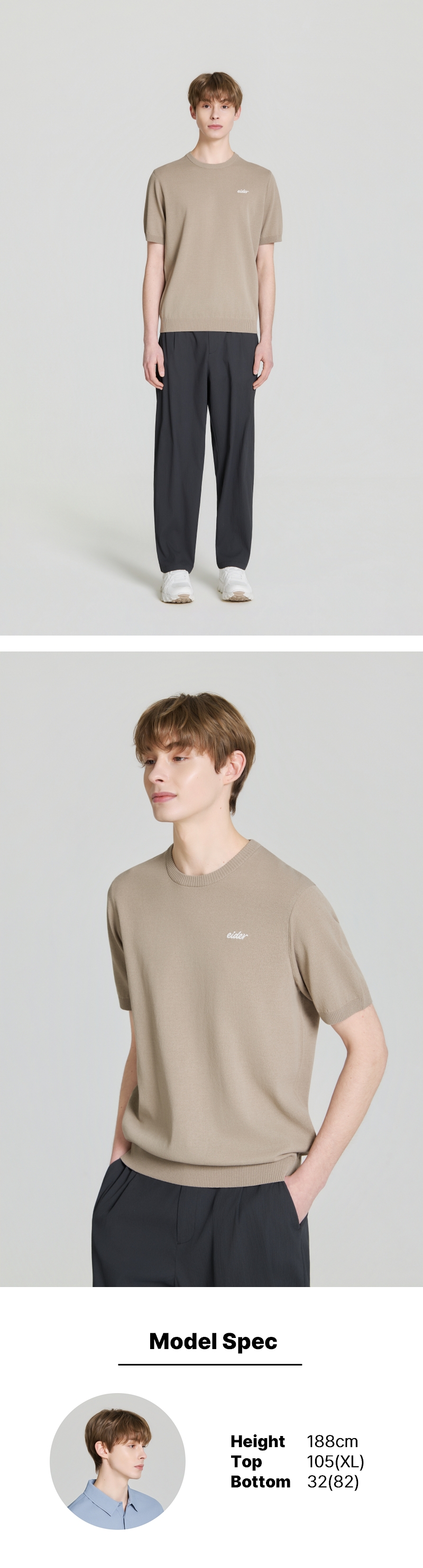 ICE SWEATER (아이스 스웨터) 남성 반팔 라운드 (D/Beige)