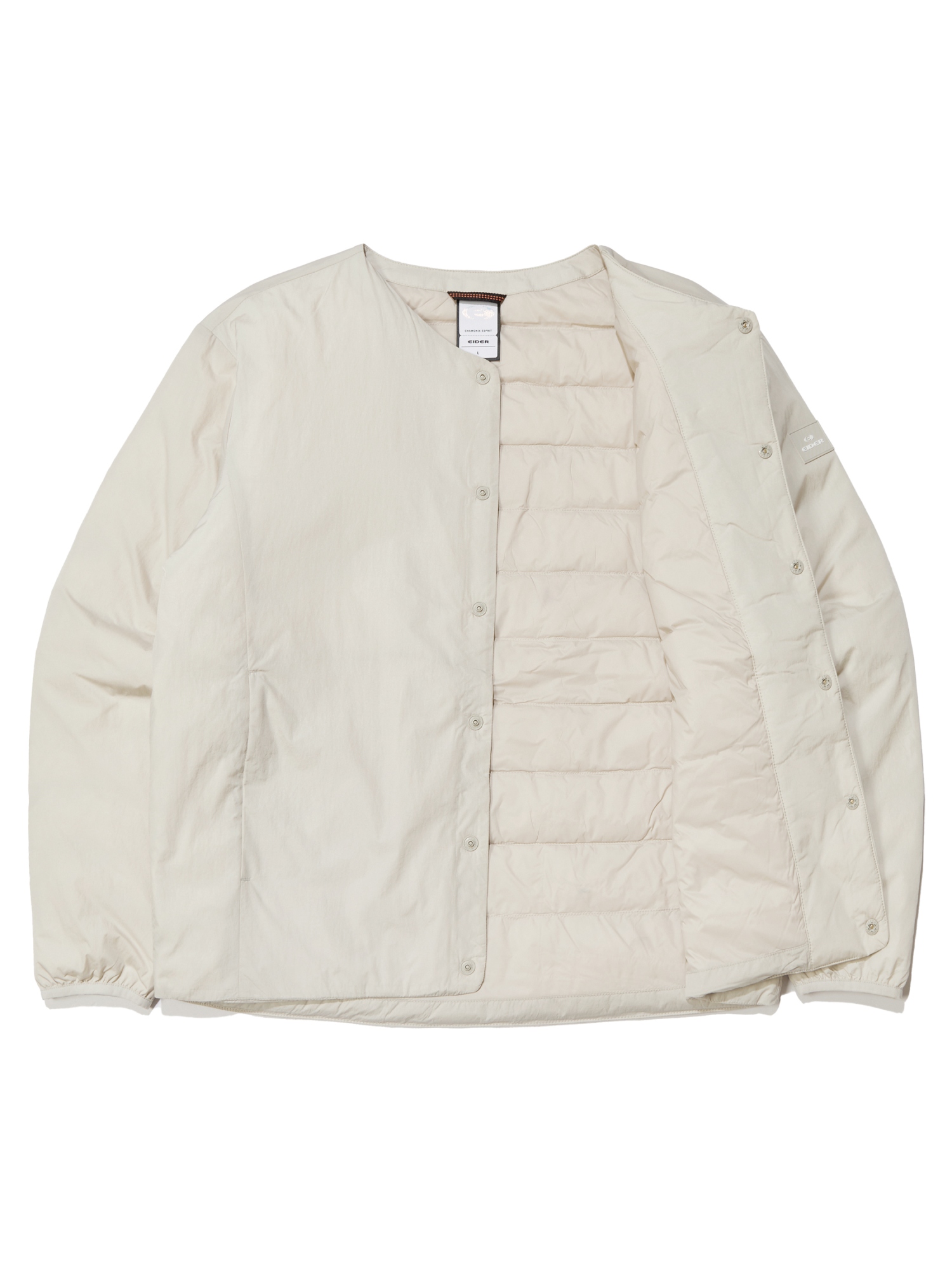 - 퀼팅 선이 바깥으로는 안 보이는 디자인에, 가디건 처럼 입을 수 있는 슬림 다운 자켓입니다.