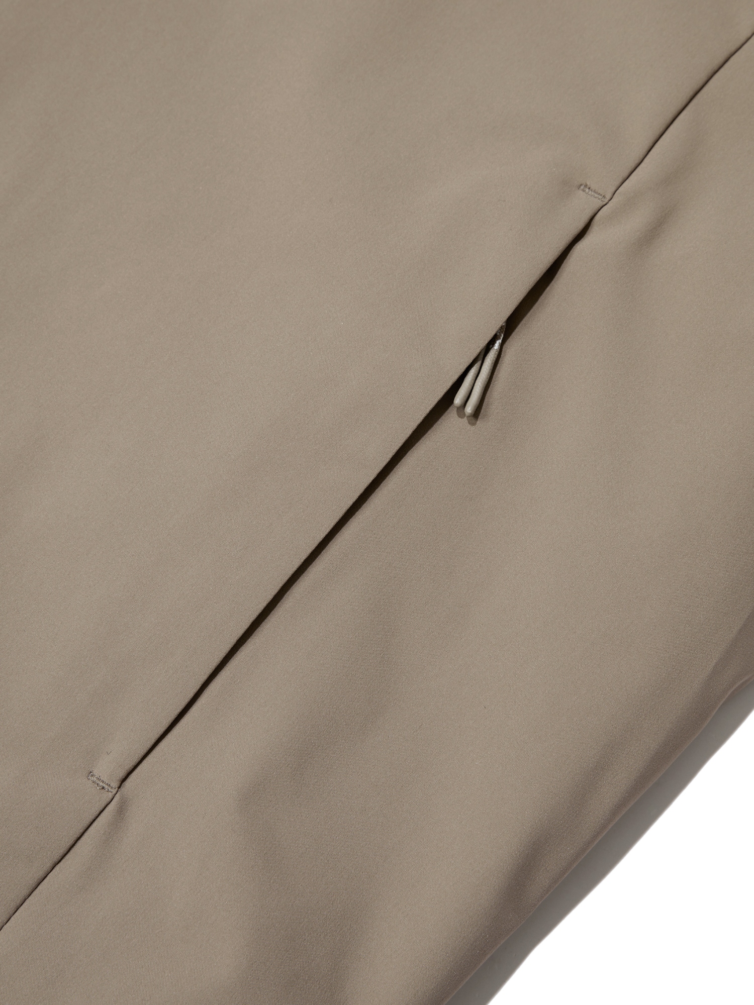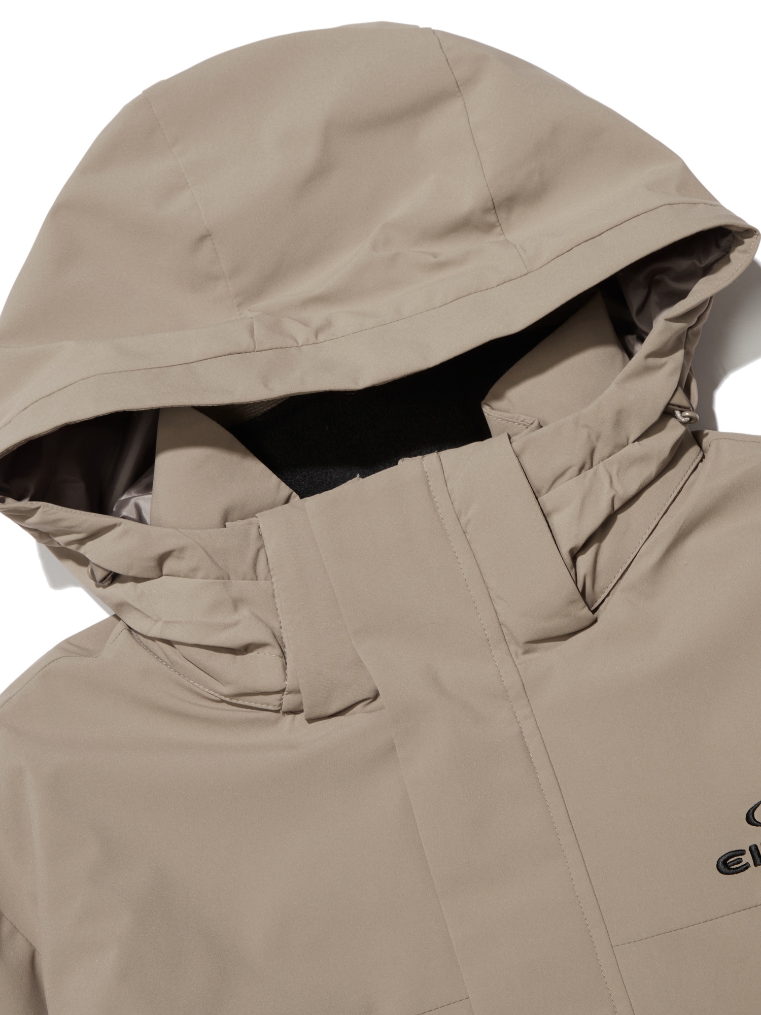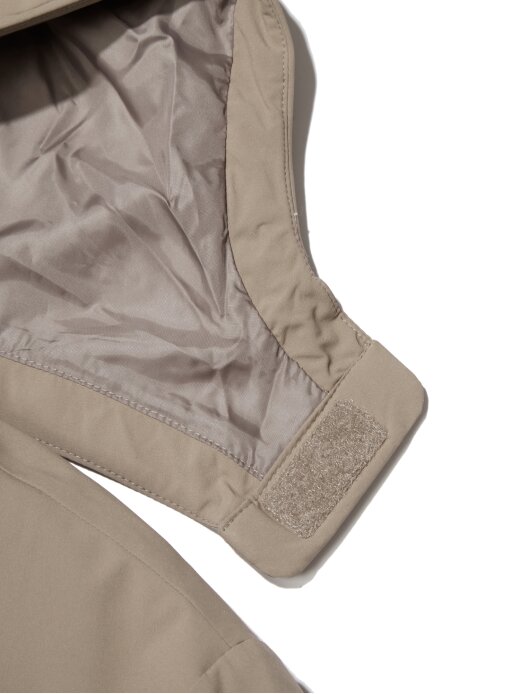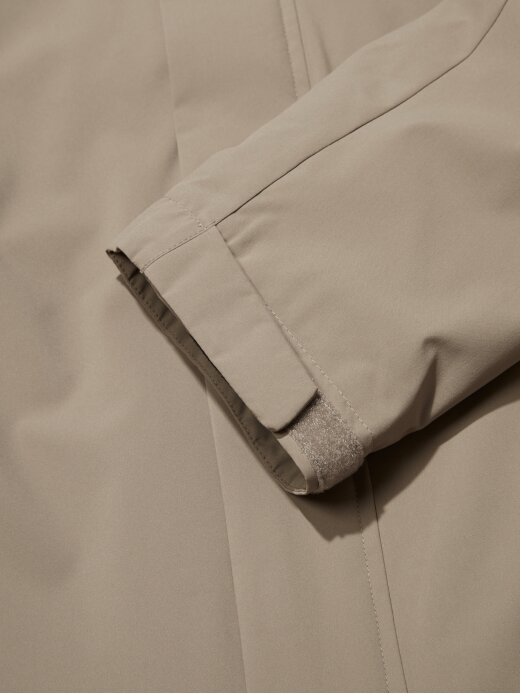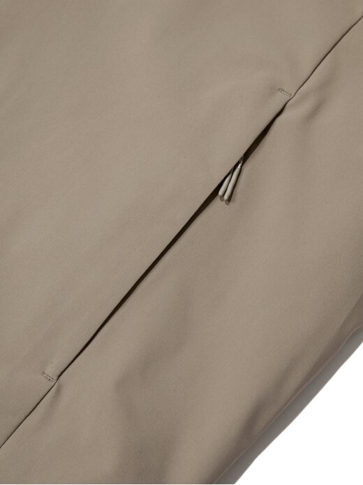 -앞 지퍼, 뒷넥 스냅, 소매 고리를 통해 자켓 결합