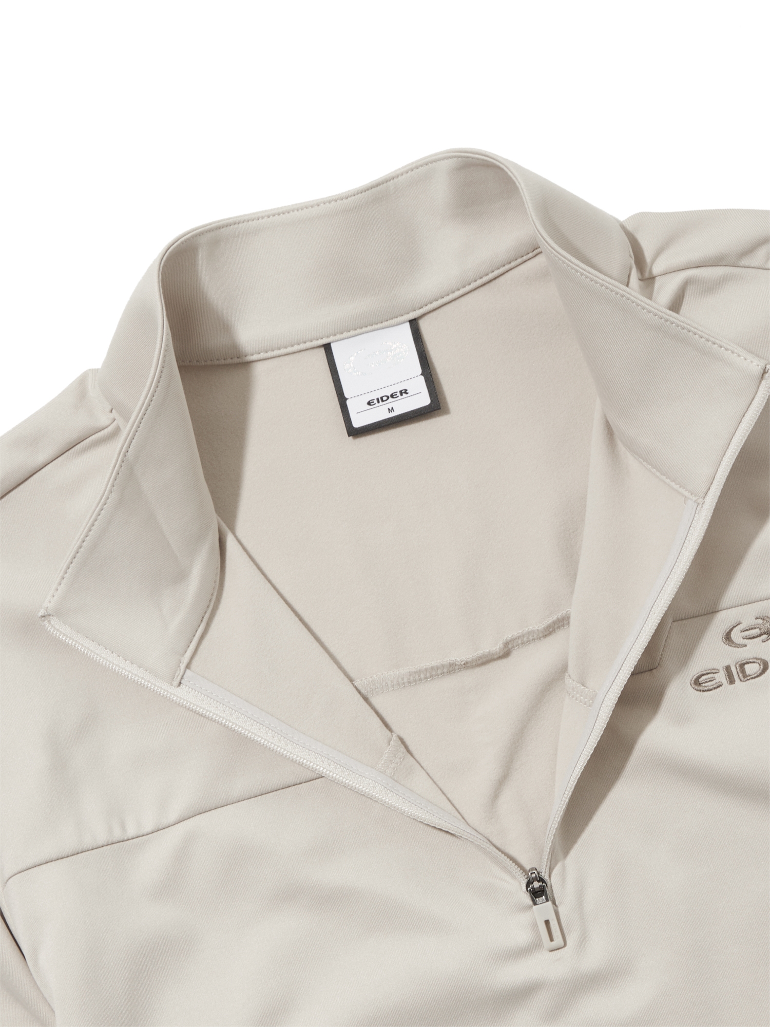 - 전면 로고 자수를 적용한 베이직 짚업 티셔츠입니다.