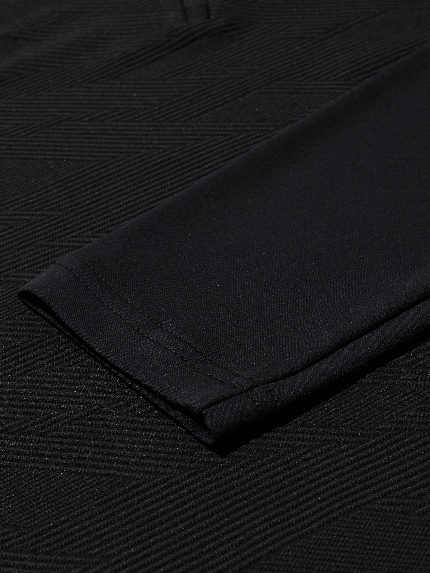 - 자카드 소재와 소매 솔리드 소재가 하이브리드 된 짚업 티셔츠