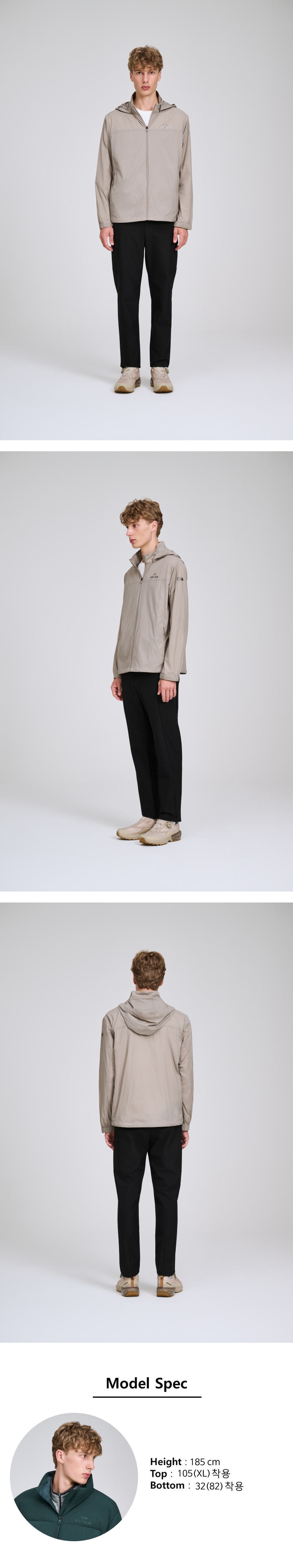 - 스트레치와 복원력이 뛰어난 나일론 원단으로 기온 차가 큰 간절기 시즌 착용하기 용이합니다.