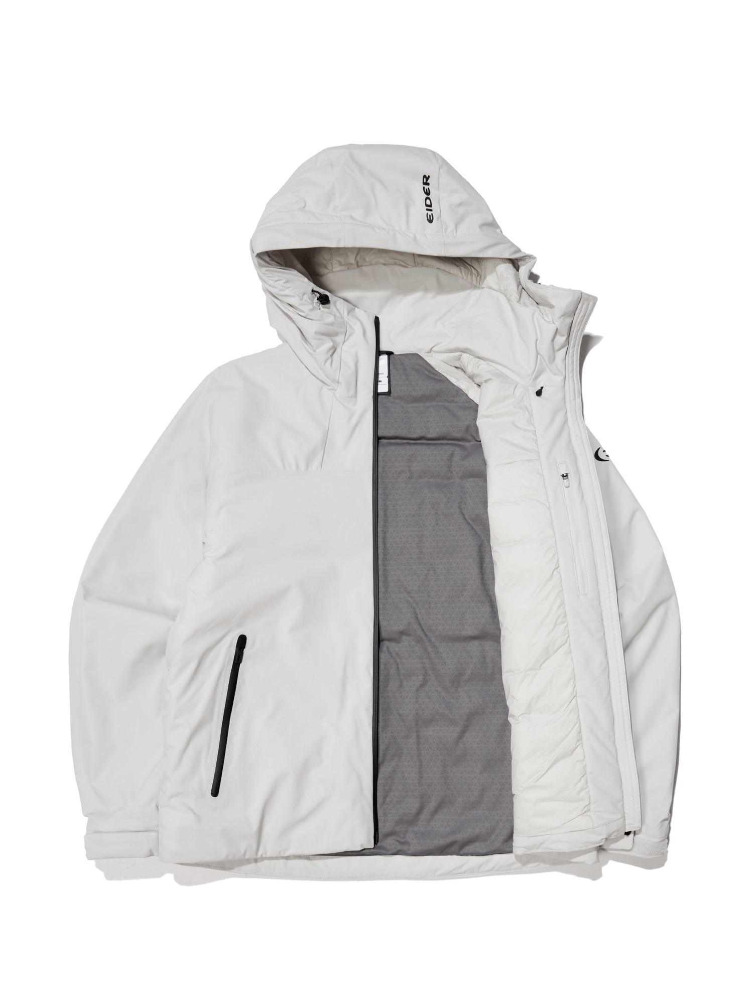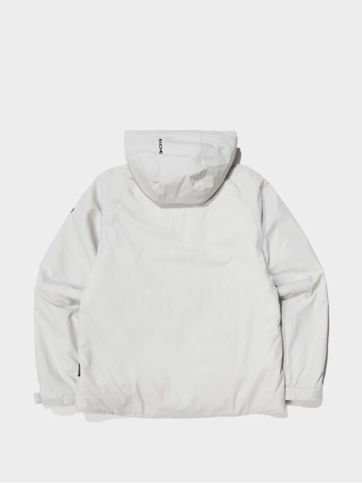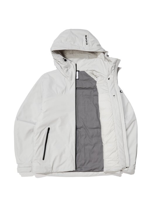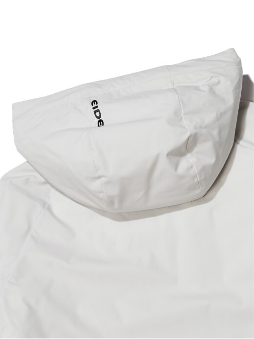 비와 눈에 젖기 쉬운 어깨와 후드, 땀과 습기가 많은 겨드랑이를 중심으로 수분을 흡수하지 않고 속건 효과의 인공패딩을 배치함으로써, 열 손실을 방지하고, 보온력과 내구성을 강화시킵니다.