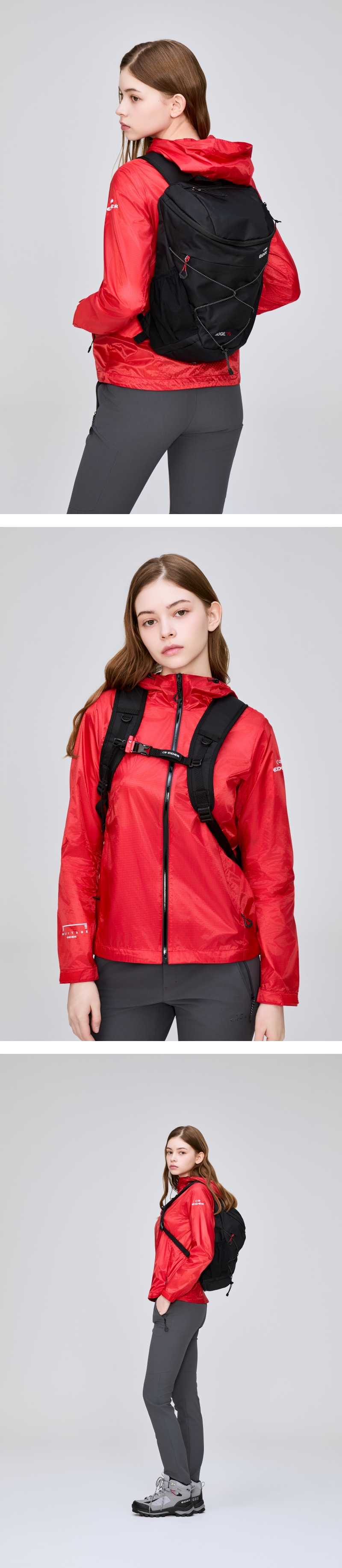 타공 EVA 등판 및 에어메쉬 멜빵을 활용하여 가볍고 활동성 우수