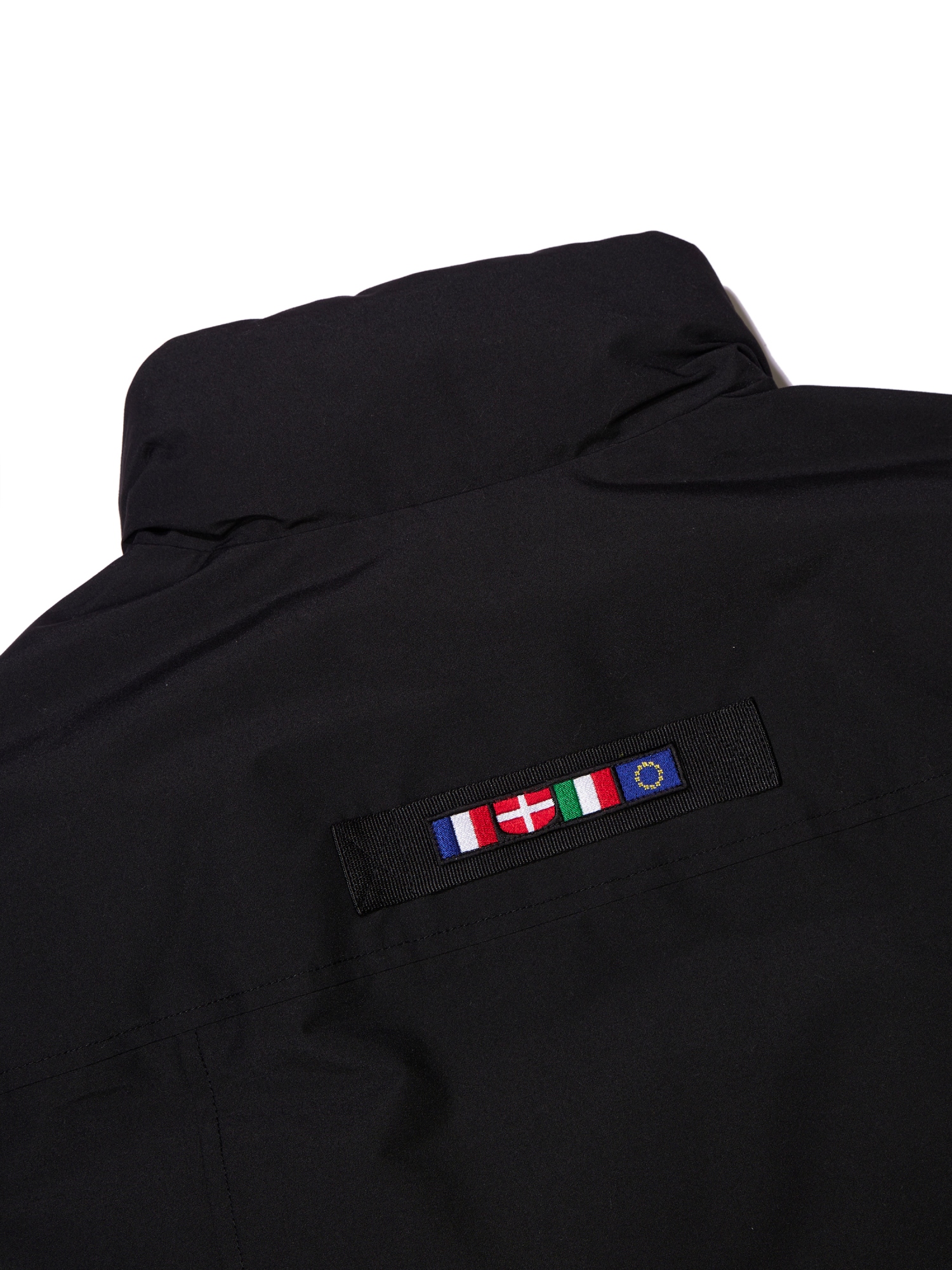 -앞판 포켓 디자인과 사양은 스투키 다운 제품과 동일하며, 국기 와펜은 등판에 위치합니다.