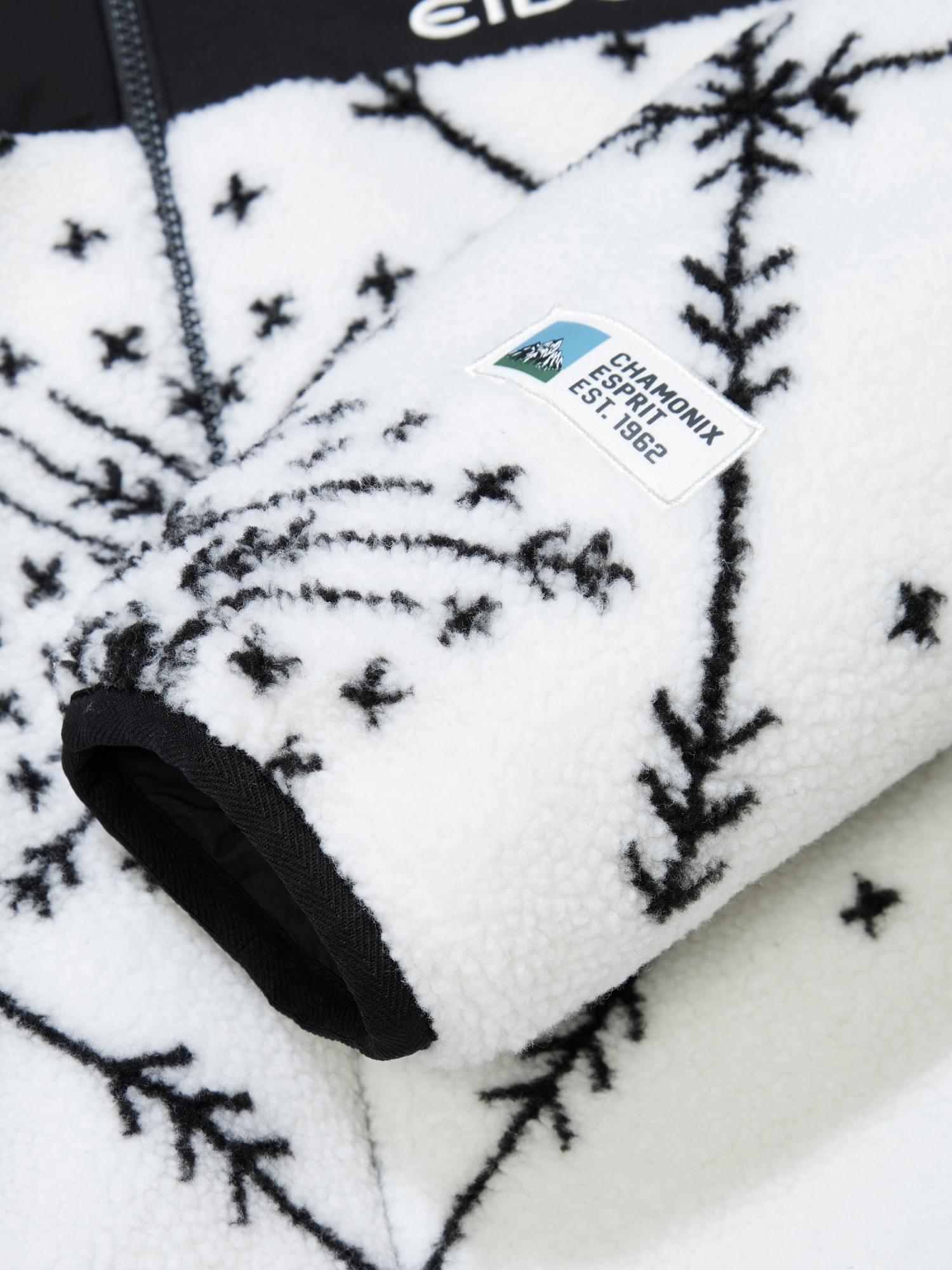 - 소재 : G1 (겉감1) 부위에는 샤모니, 몽블랑의 모티브가 적용된 자카드 플리스 소재가 적용되었습니다.