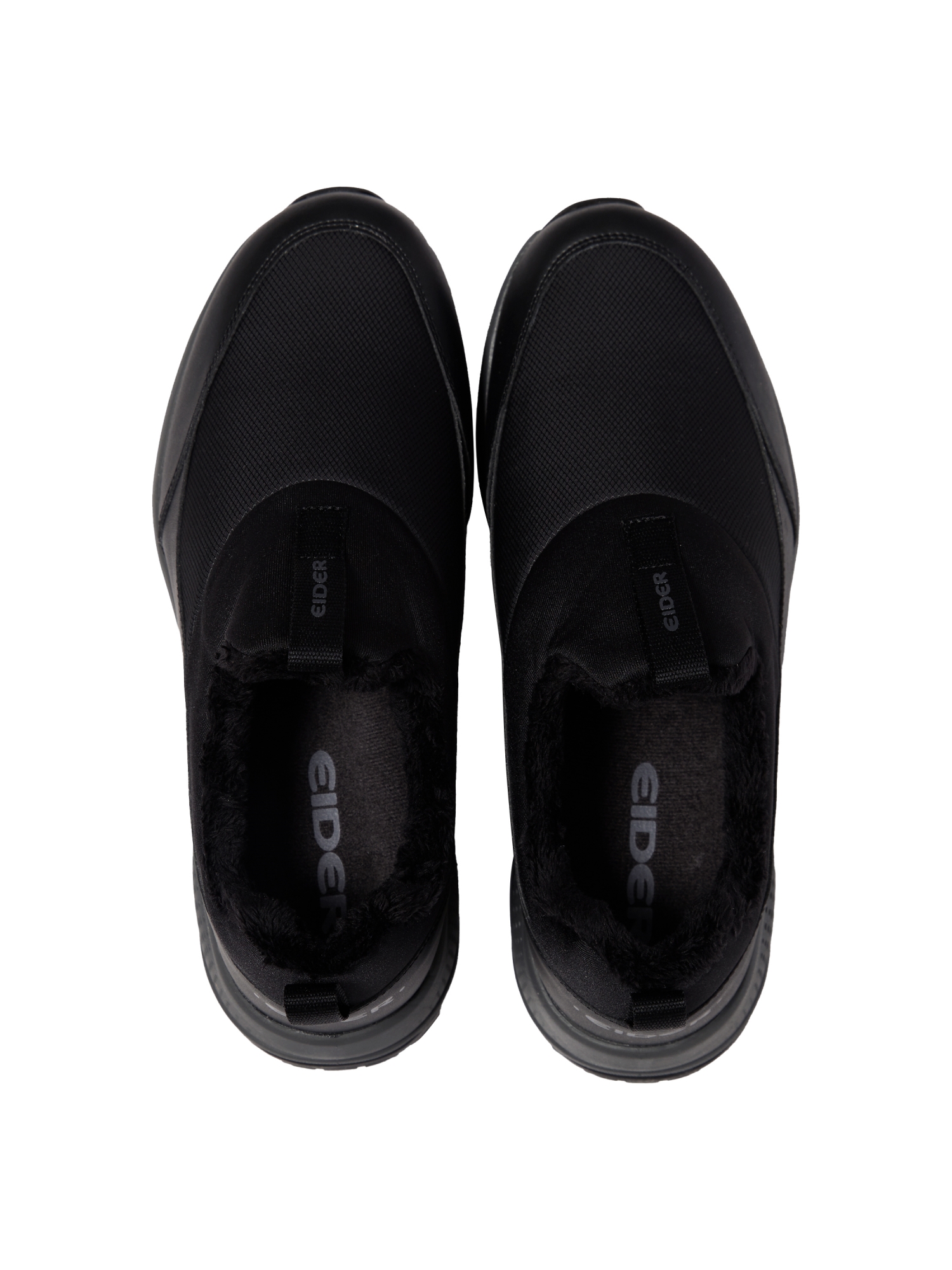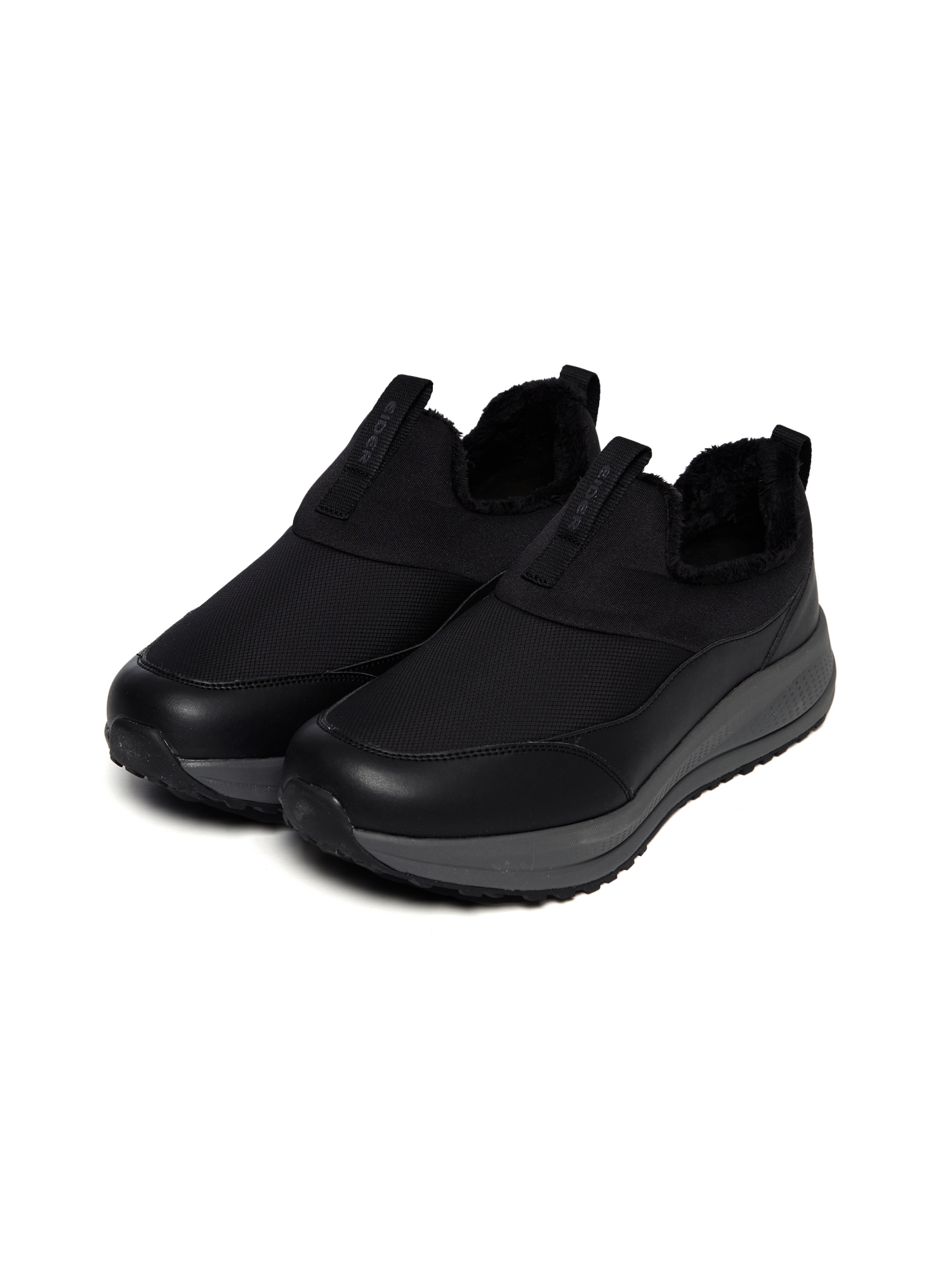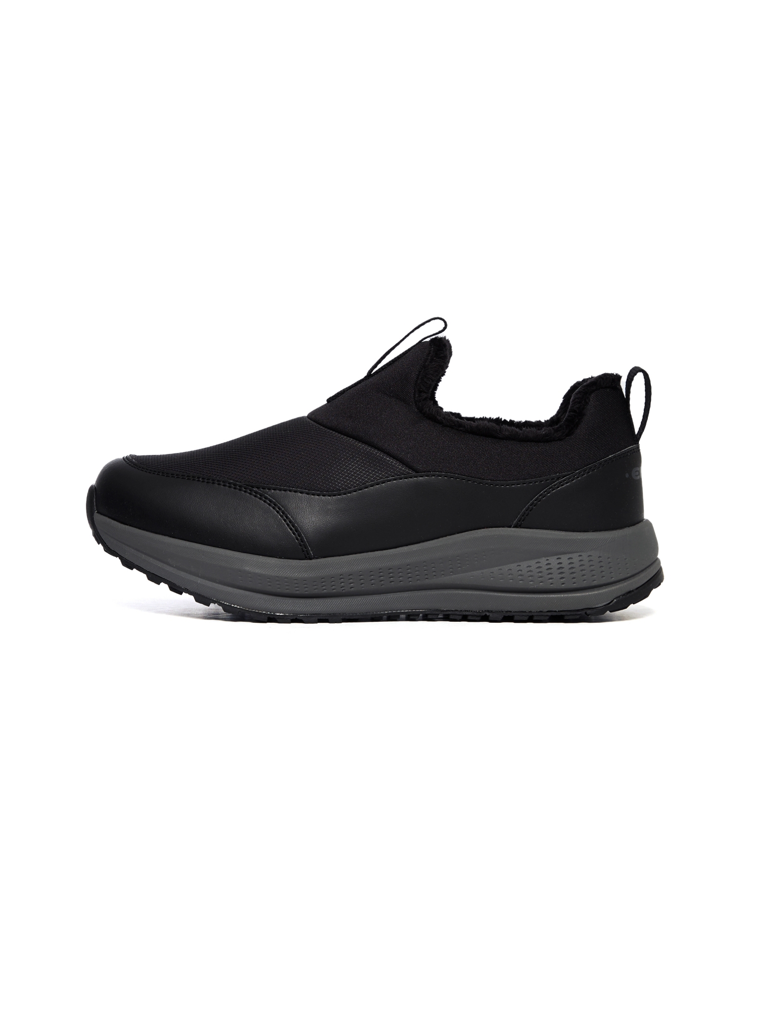 - 두가지 갑피 소재 타입의 슬립온 로우컷 방한화