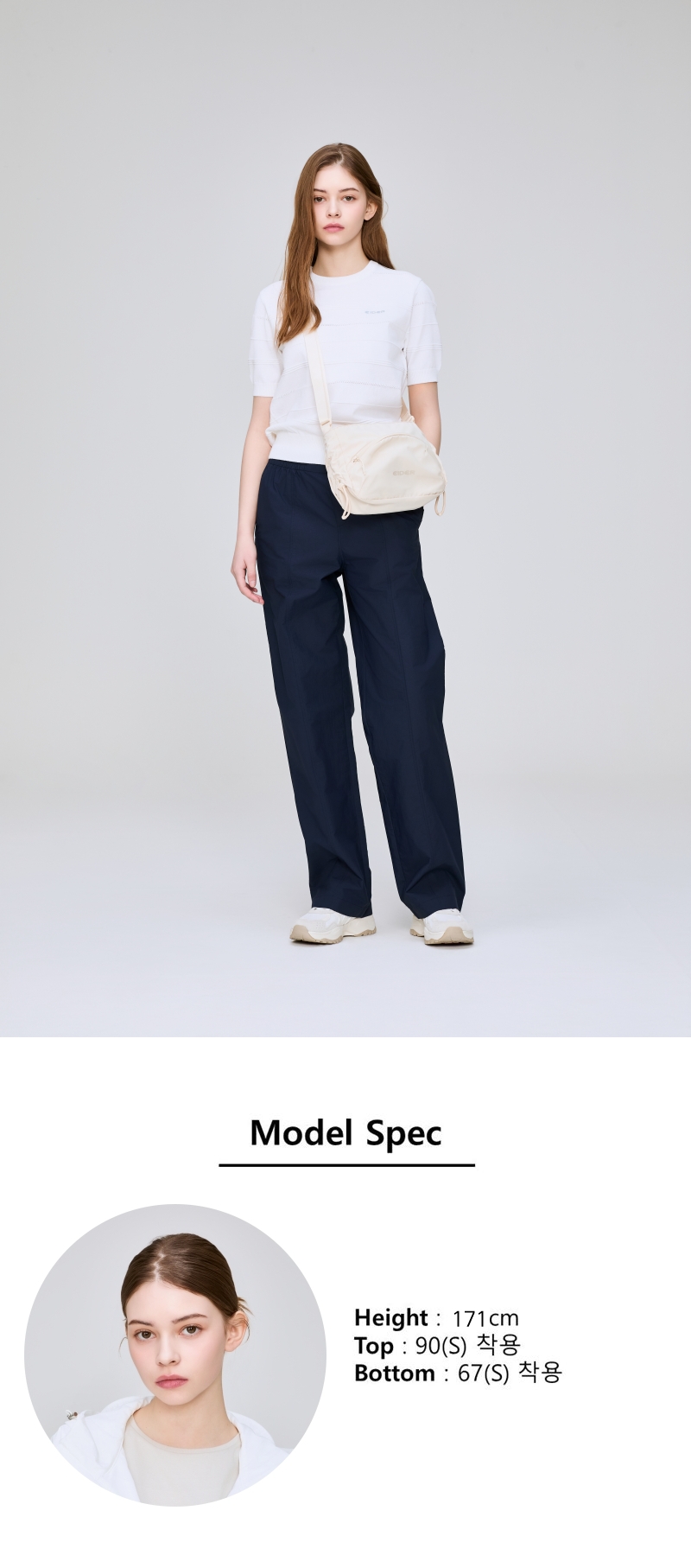 - 부드러운 터치감과 색감의 고밀도 70D 나일론 소재로 여성스러운 무드 강조