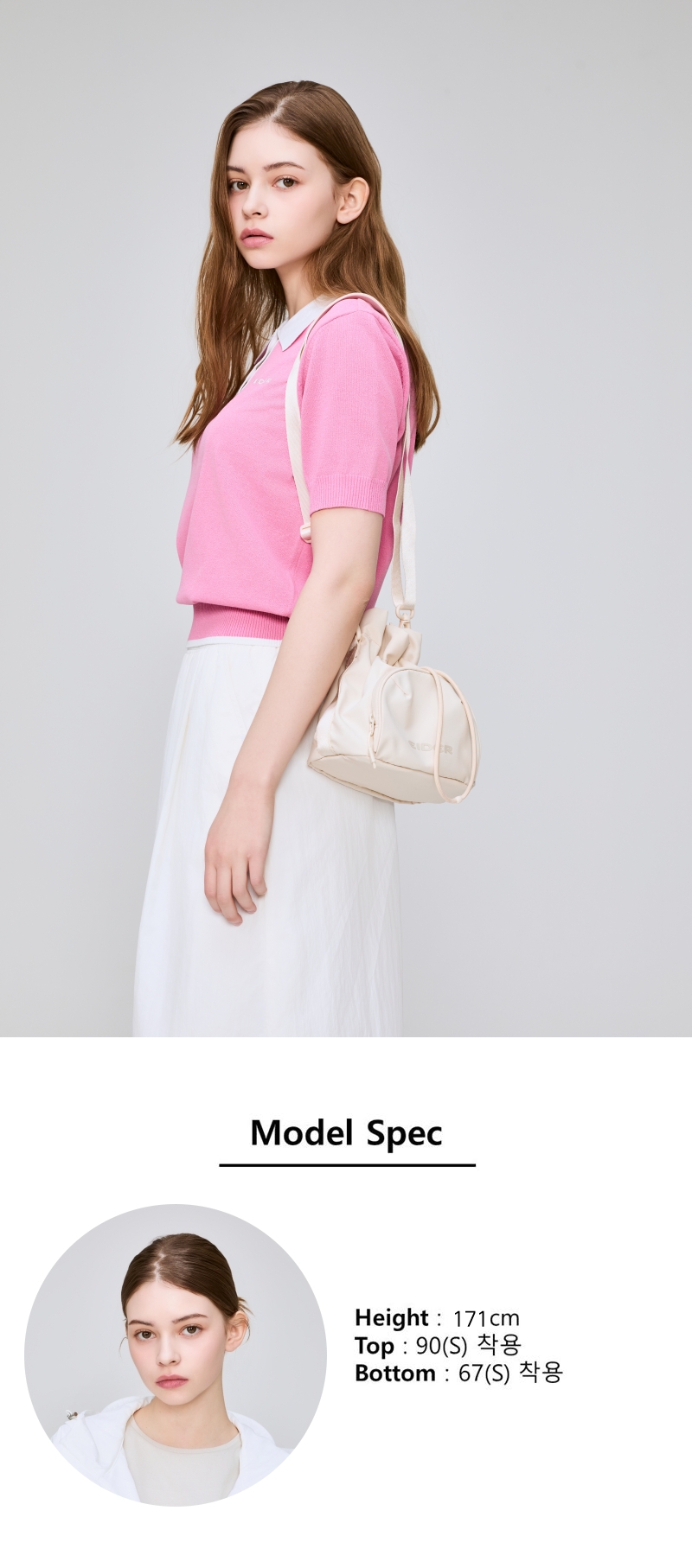 - 부드러운 터치감과 색감의 고밀도 70D 나일론 소재로 여성스러운 무드 강조