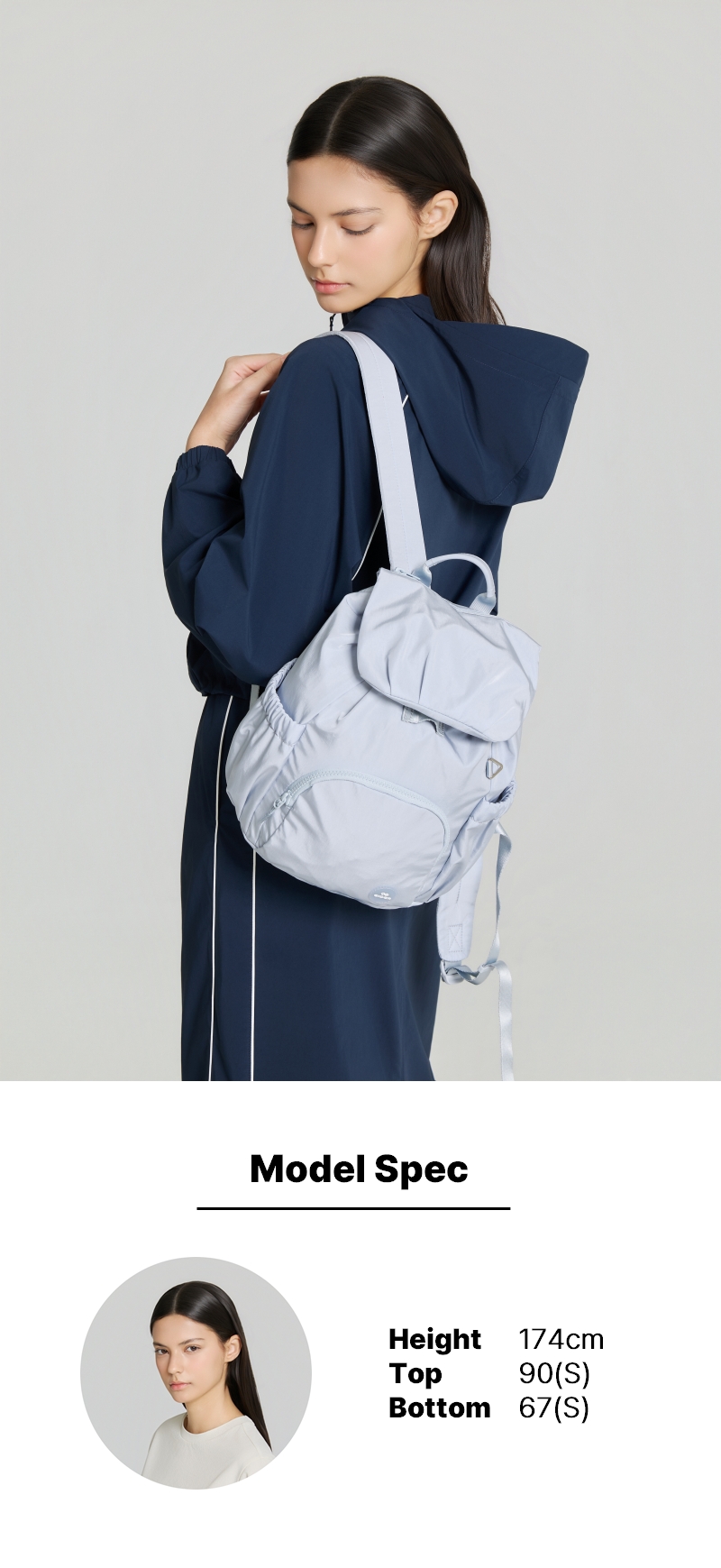 - 자연스러운 셔링이 잡혀있는 후드가 디자인 포인트로 적용