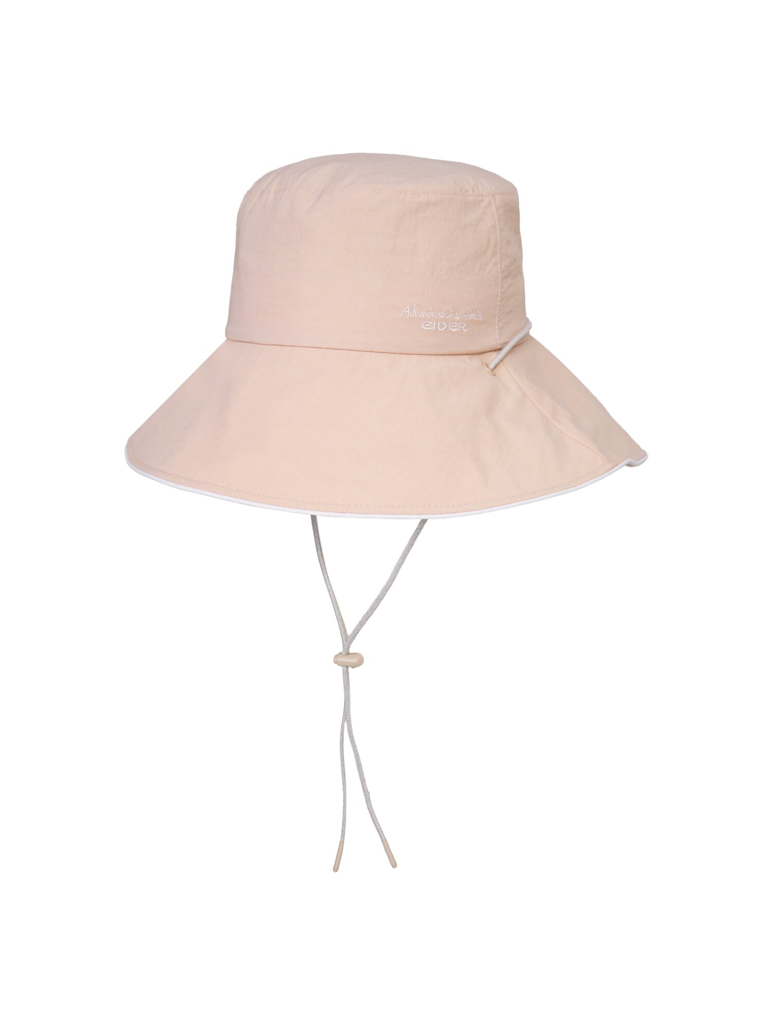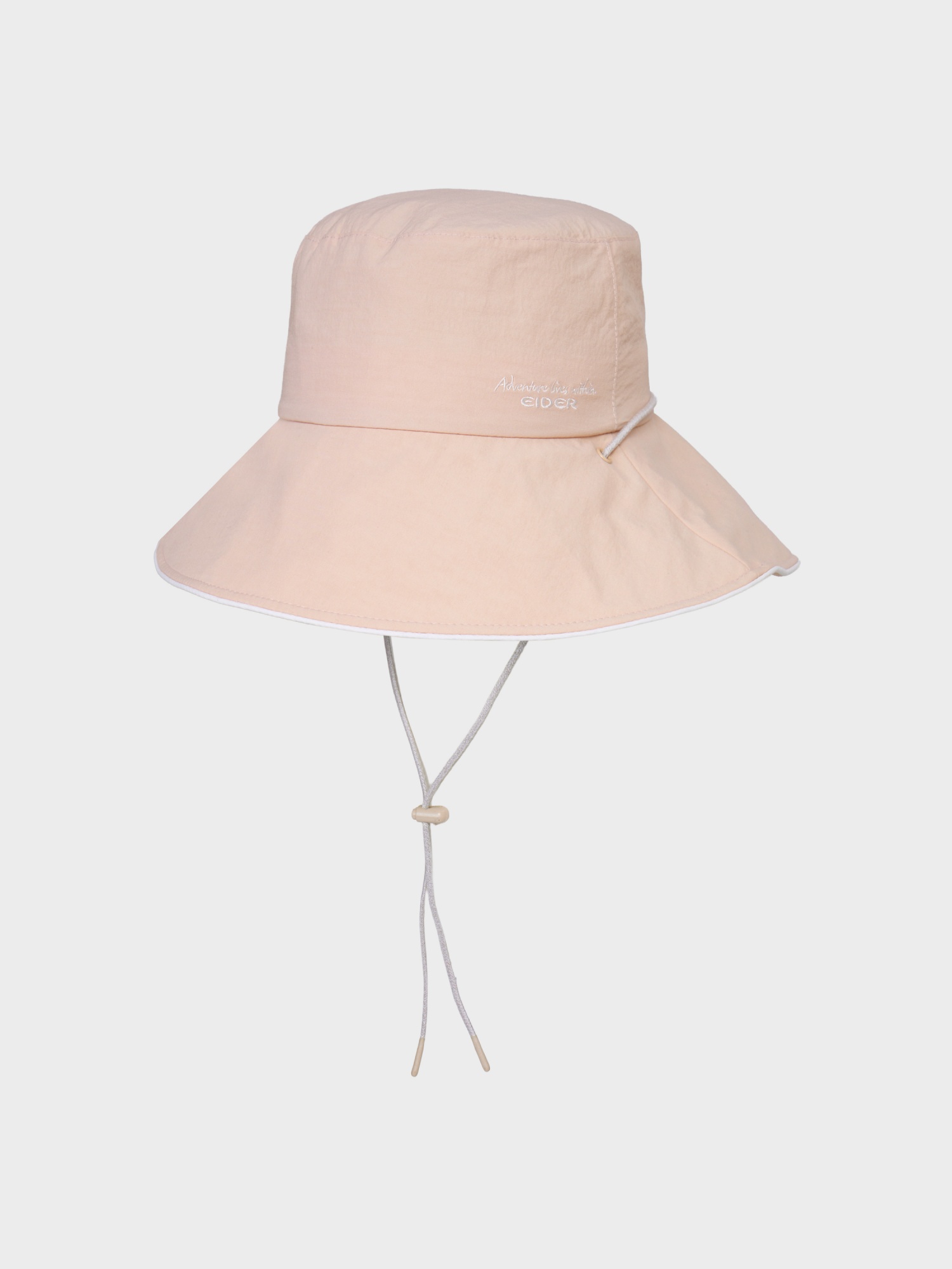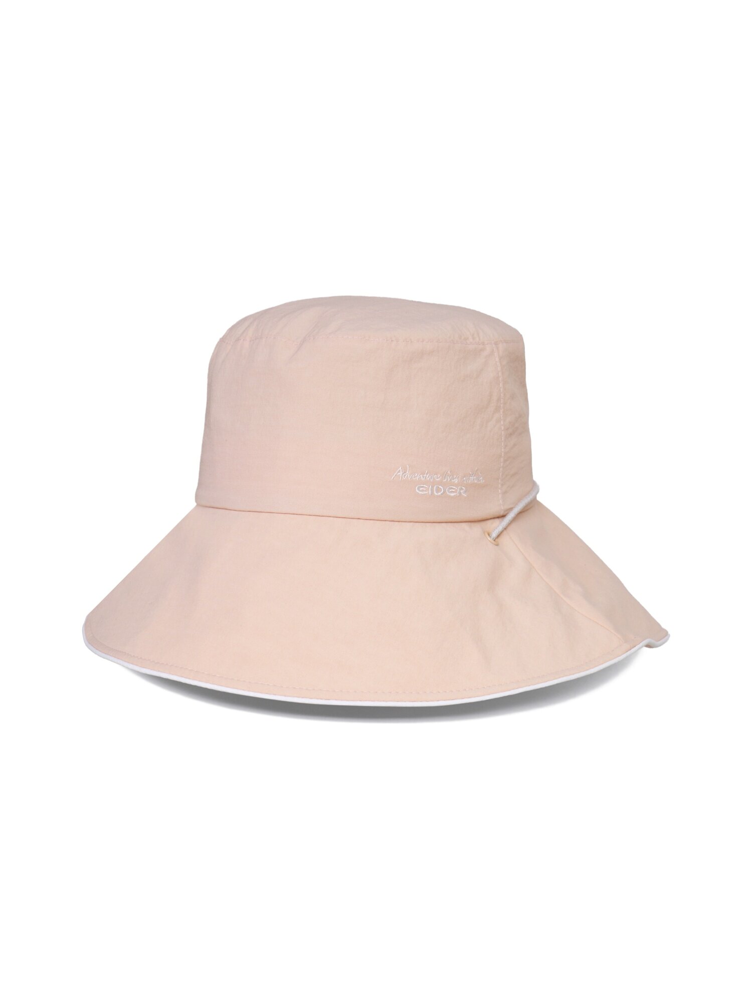 [부드러운 색감과 자수로고가 포인트가 되는 여성 버킷햇]