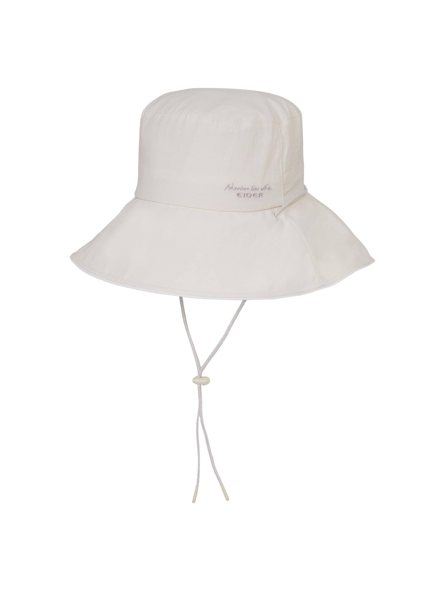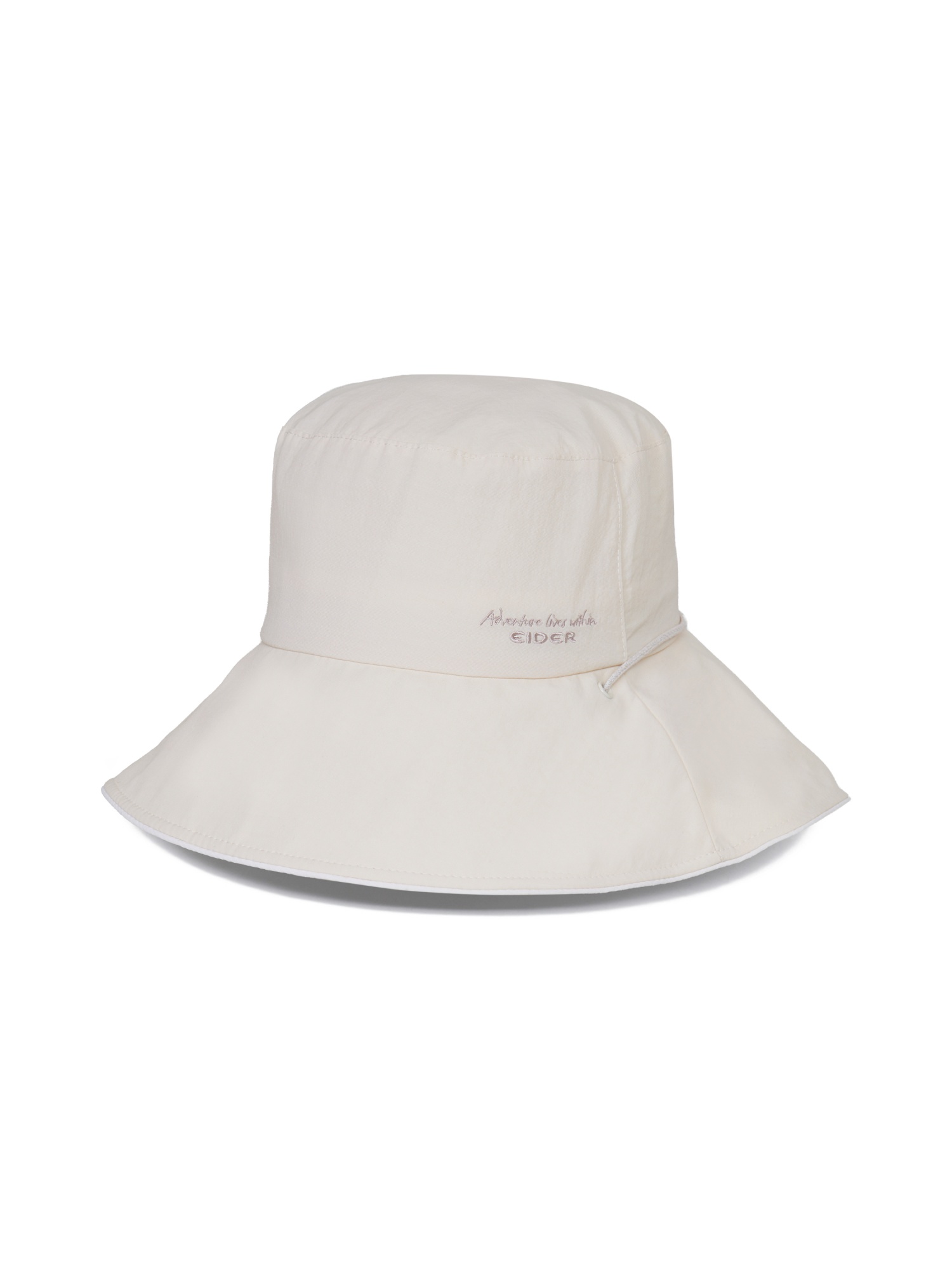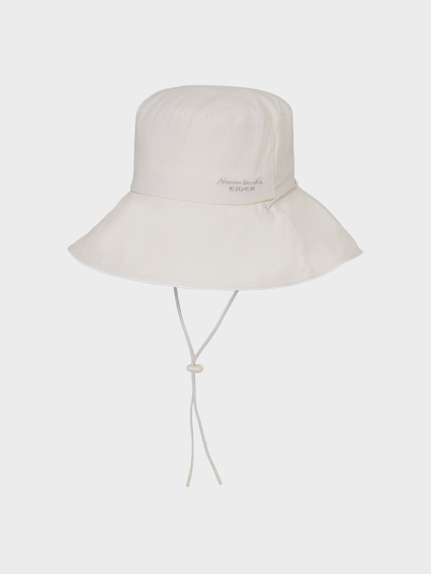 [부드러운 색감과 자수로고가 포인트가 되는 여성 버킷햇]