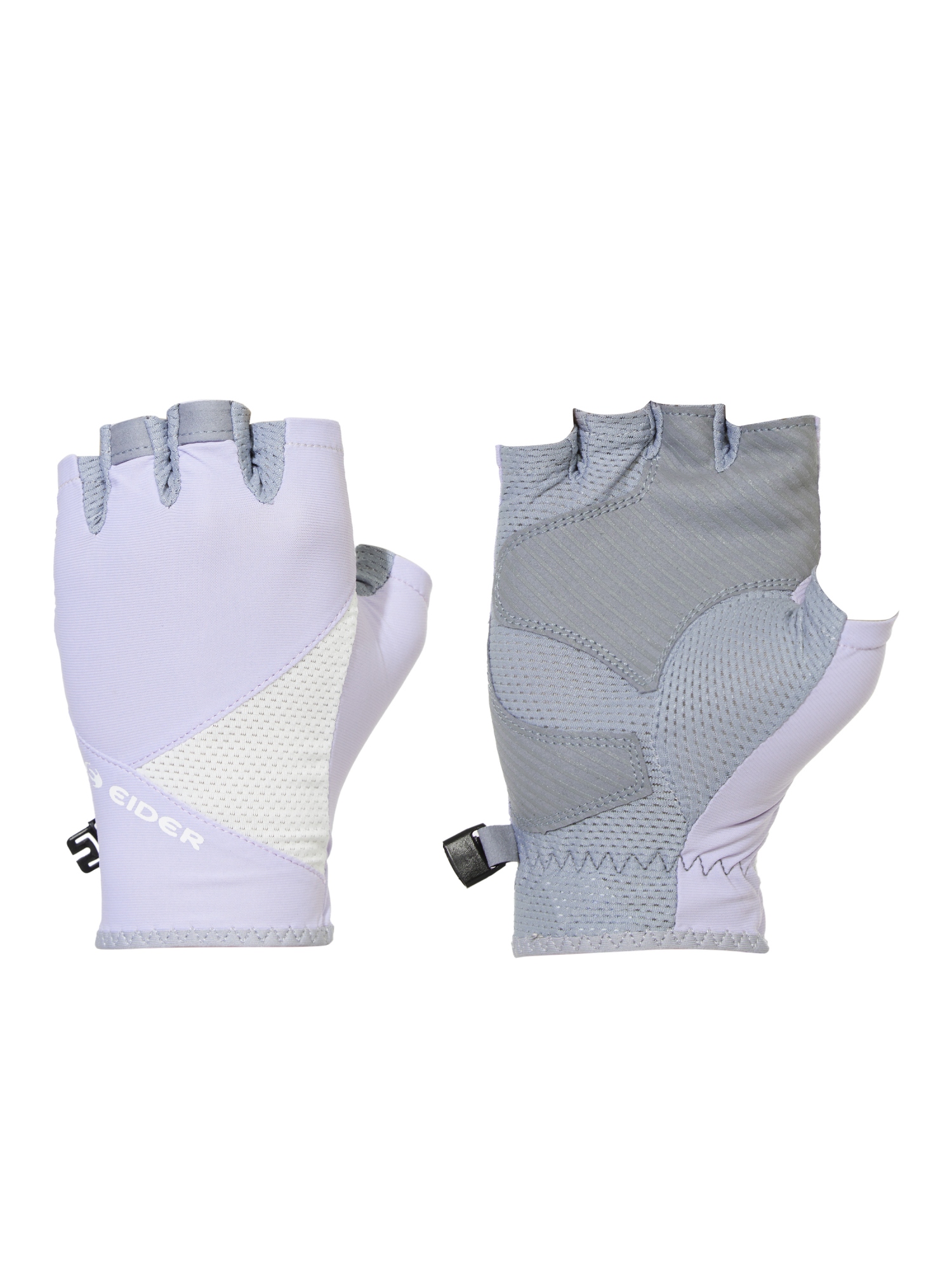 [흡습속건 및 신축성이 우수한 싱글스판 소재를 사용한 여성용 반장갑] - 아이스 가공을 하여 냉감 및 향균, 소취 효과 탁월 - 바닥면의 샤무드패치와 실리콘프린트로 내구성과 그립력 강화