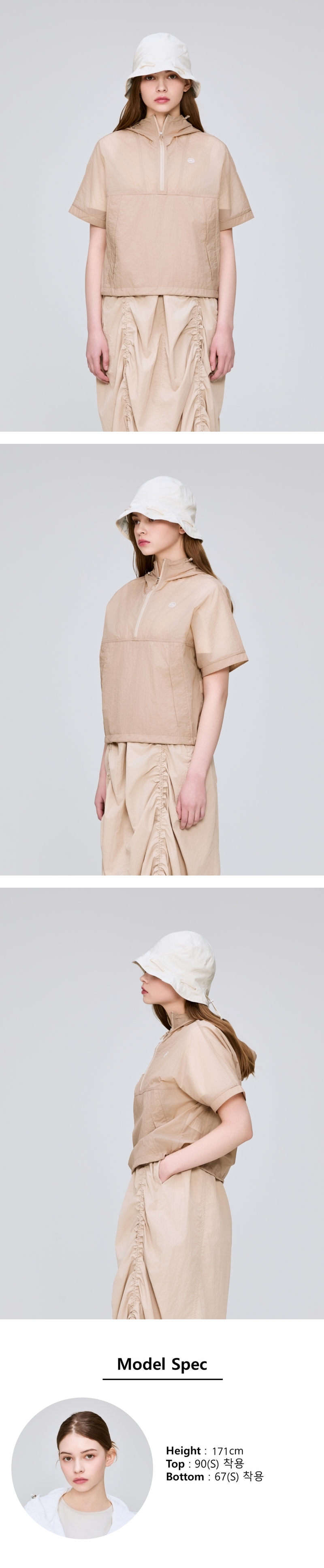 SHEER (시어) 여성 경량 반팔 아노락 자켓 (Milk tea)