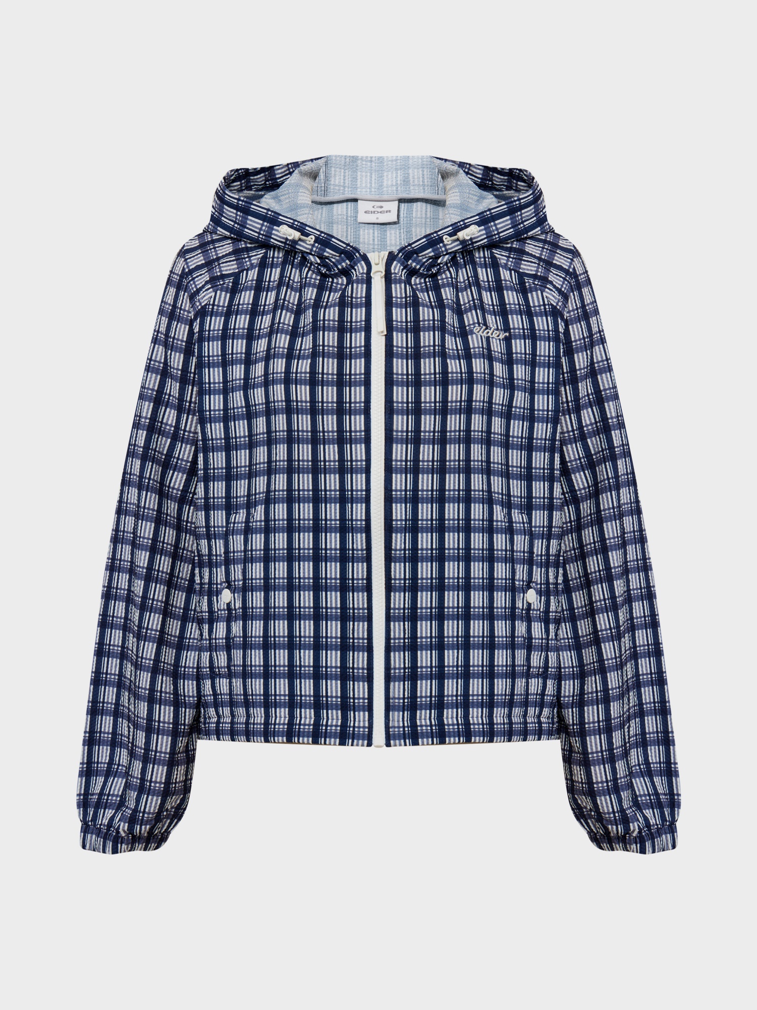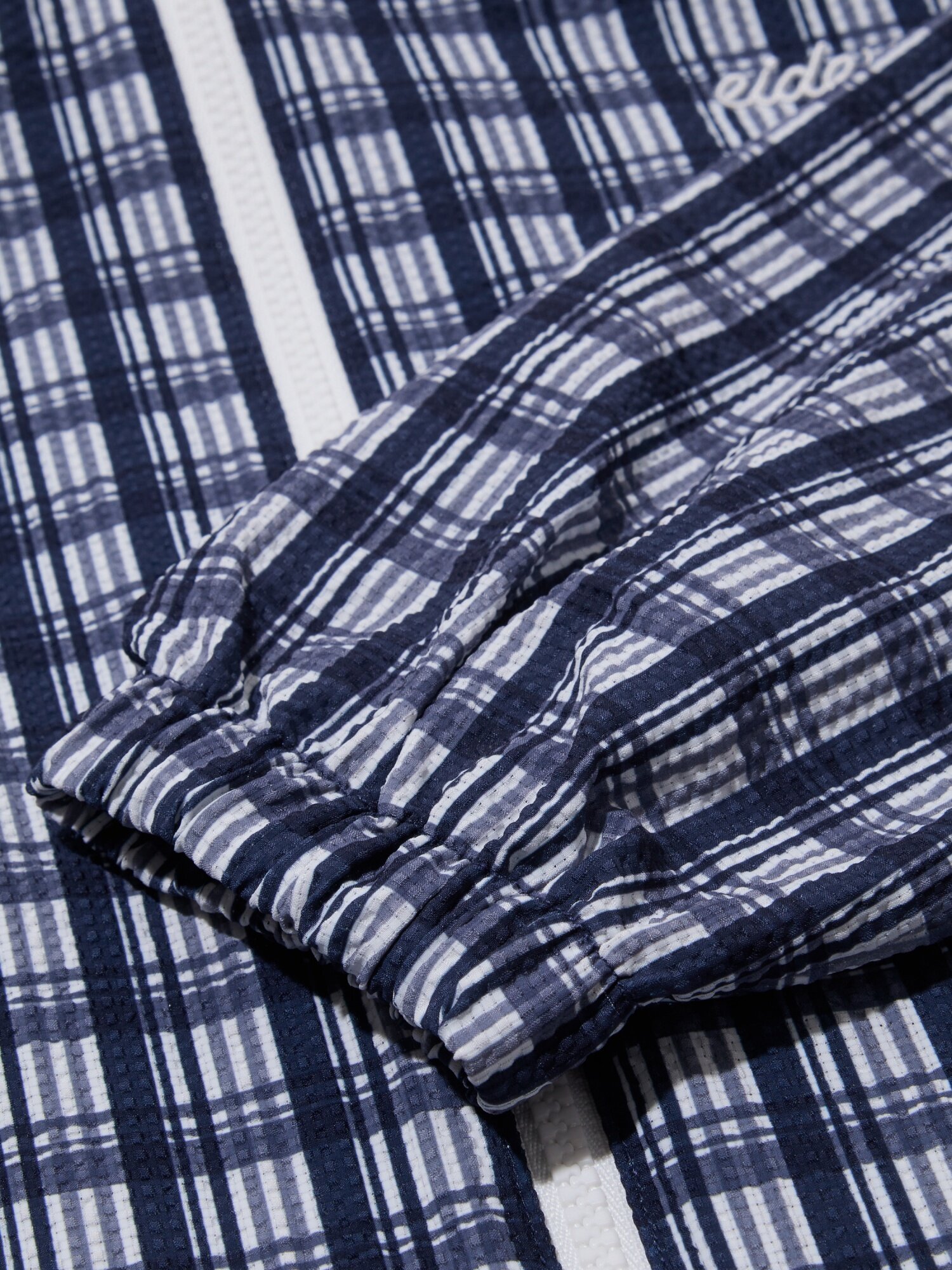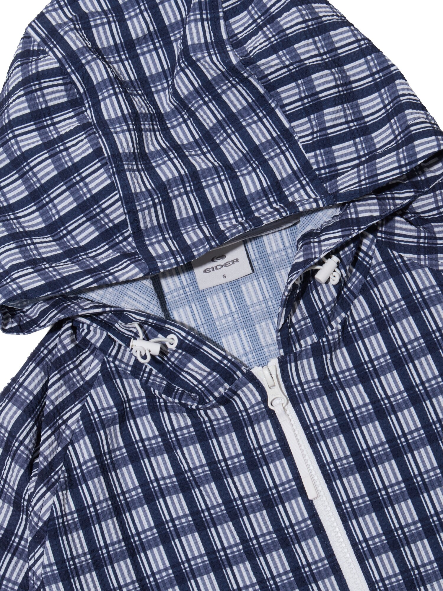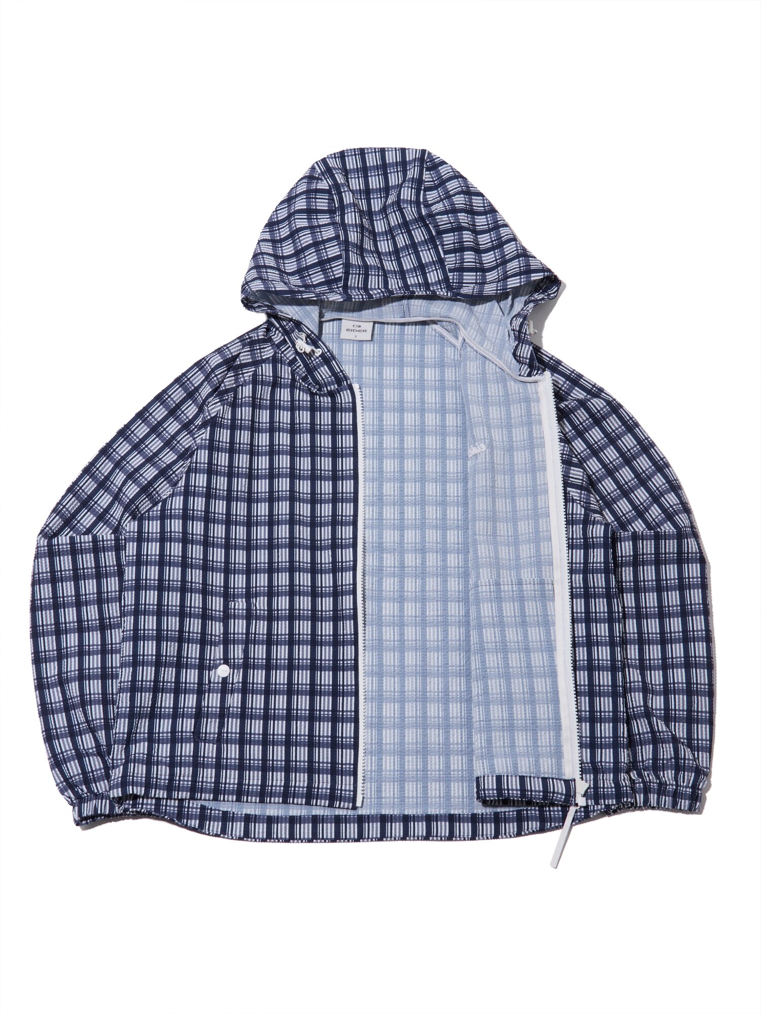 바람이 솔솔 통하는 조직에 체크 패턴이 프린트로 적용되어 시원하면서도 트렌디한 시어서커 경량 자켓