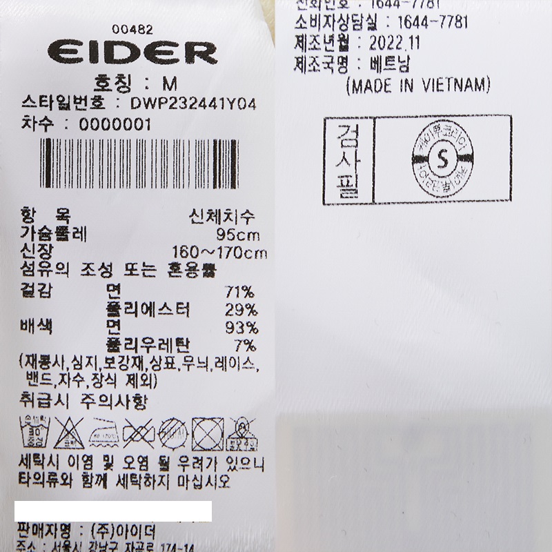 - 형태 안정성 및 흡습속건 기능이 우수한 C/P 소재 사용
