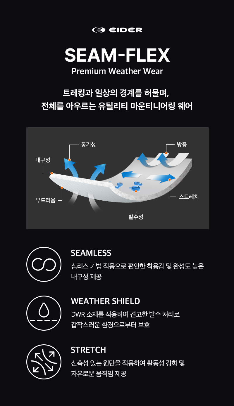 - 초발수 코팅 원단 적용을 통해 높은 발수성 제공