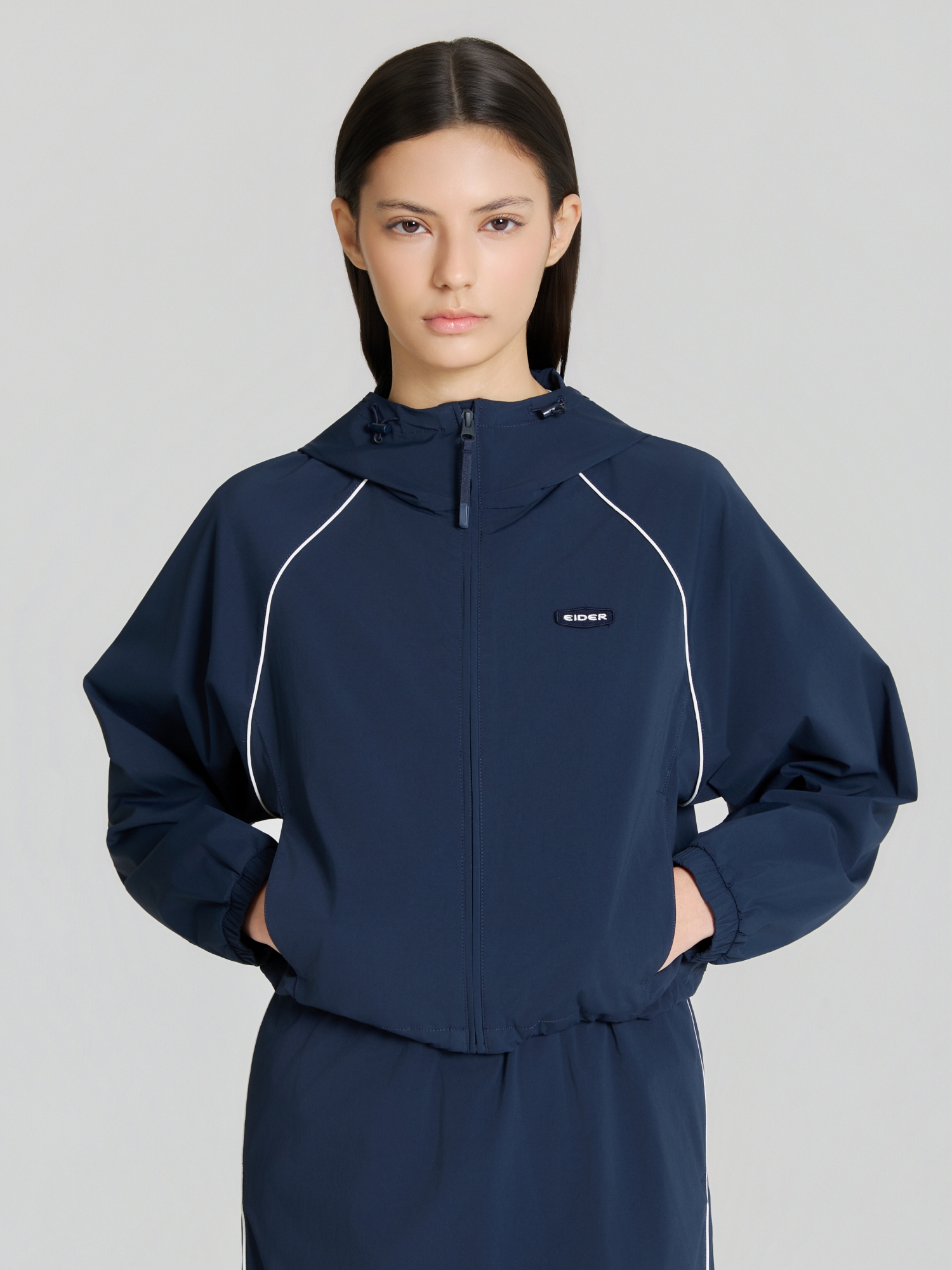- 크롭한 기장감에 후드 부착형 디자인
