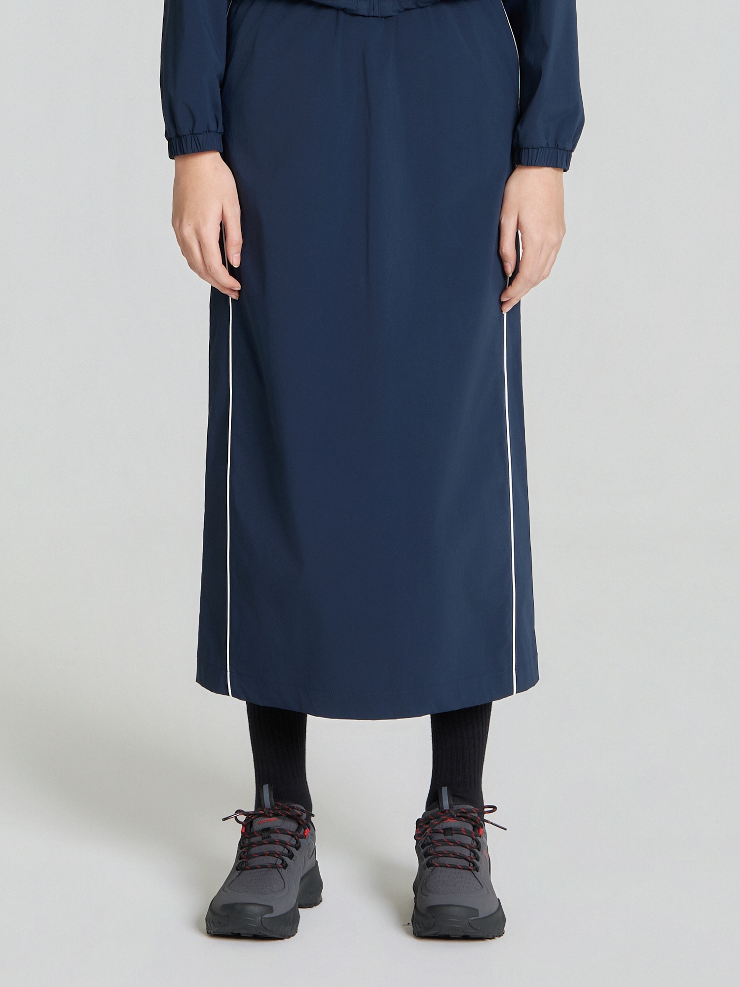 - 적당한 기장감의 스커트로 트랙 자켓이랑 셋업으로 착장 추천