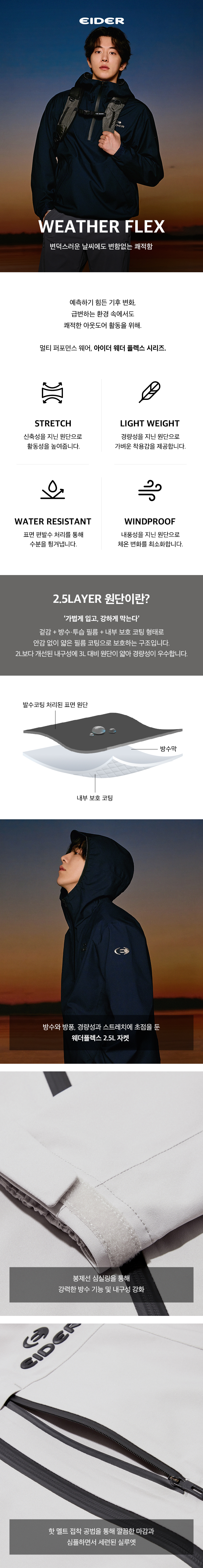 -호천후와 악천후 등 어떠한 날씨에도 착용가능한 일반기장의 웨더플렉스 자켓입니다.