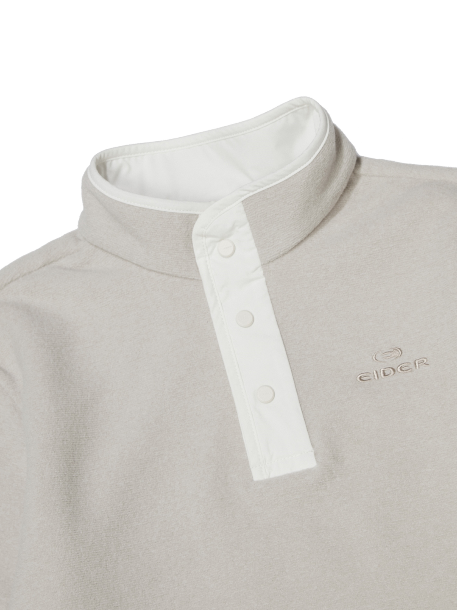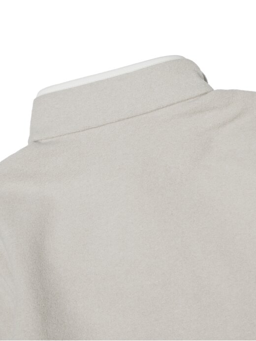 -스냅 형태의 짚업 티셔츠에 앞 단작 우븐 배색 포인트