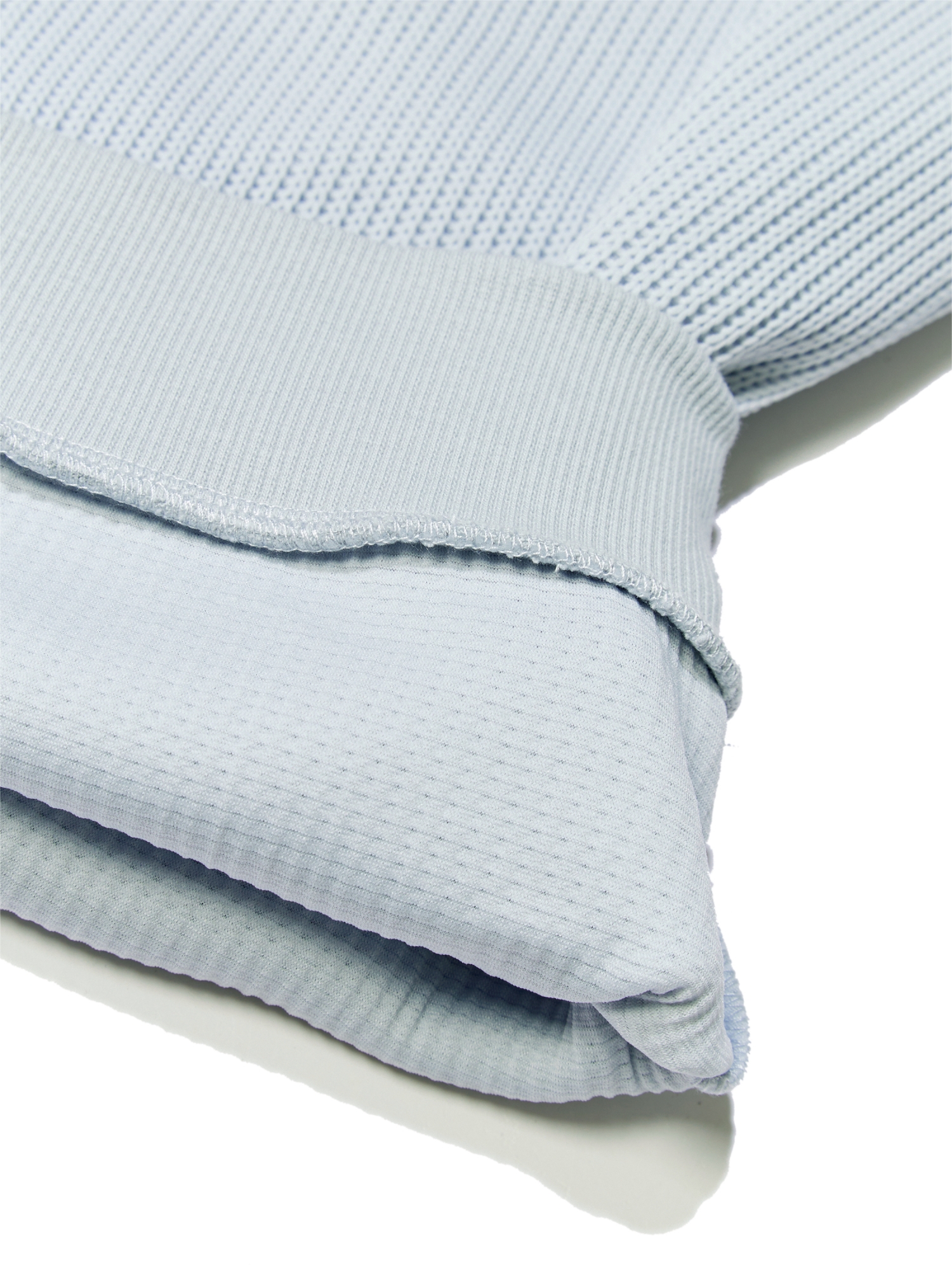 - 몸판은 스웨터 라이크 니트 소재가, 소매는 부드러운 터치감의 쿠션지로 활동성을 높인 맨투맨 티셔츠입니다.