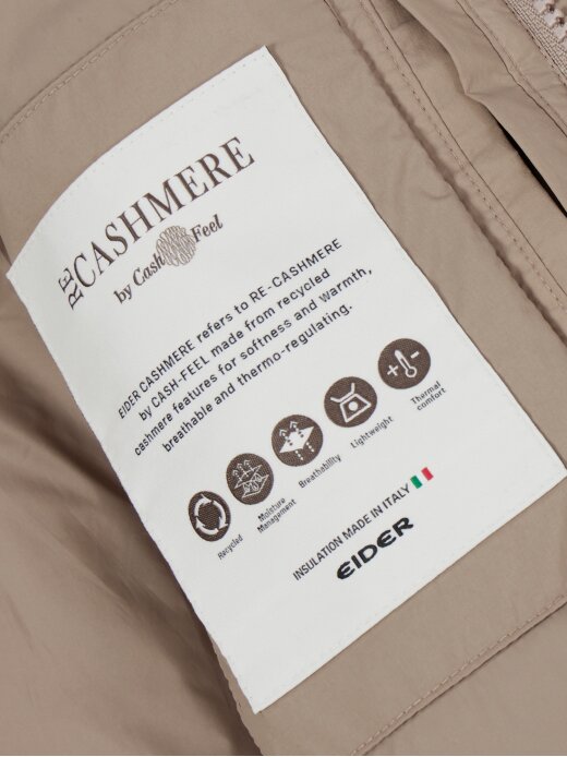 1. 아이더 독점 캐시미어 충전재 적용 : MADE IN ITALY, 프리미엄 캐시미어를 패딩으로 만들어 흡습, 방습성이 우수하면서 부드럽고 쾌적하게! 25FW에는 더 THIN해져 가벼워짐