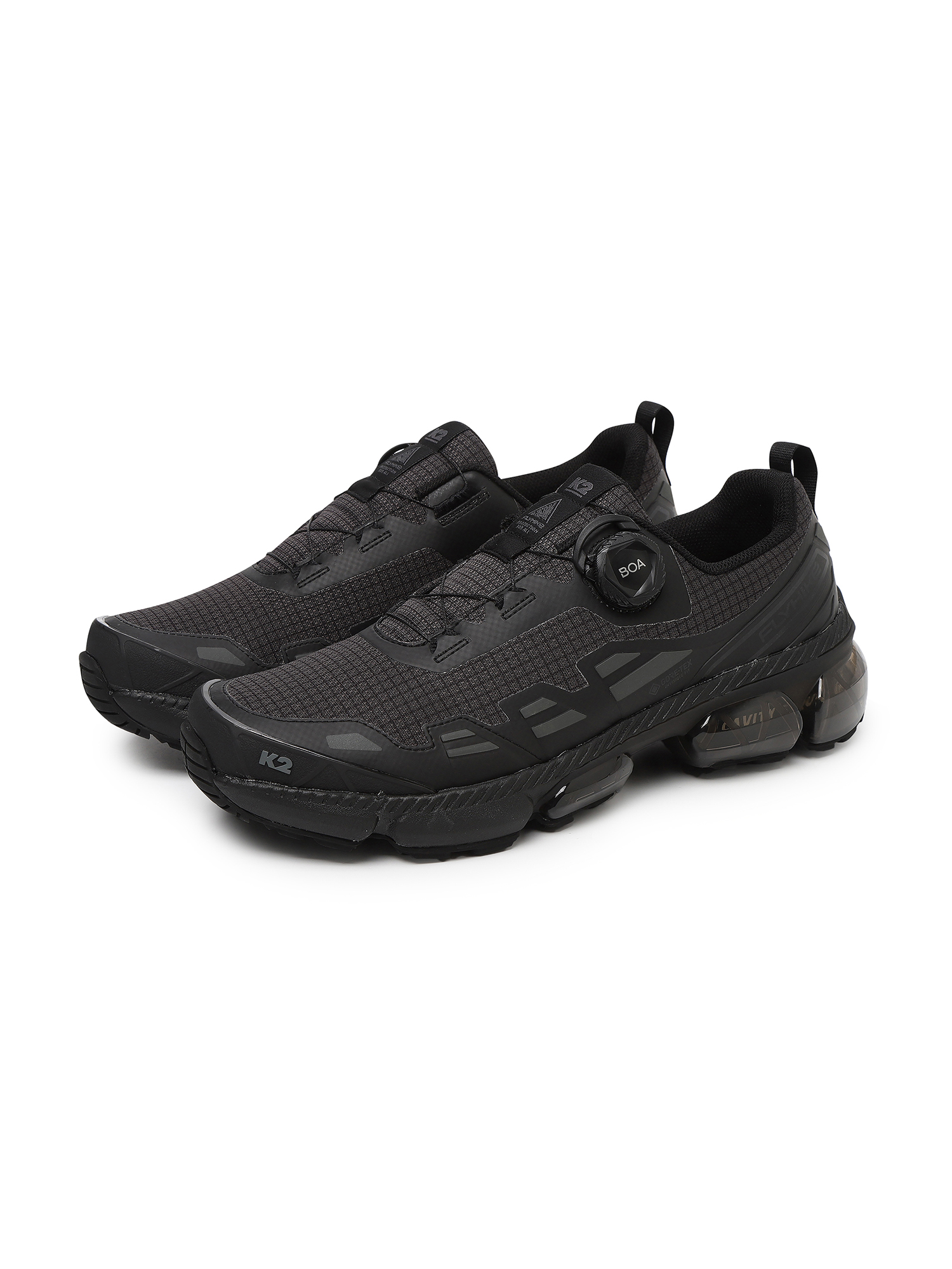 [열전도율이 높은 그래핀 원사를 적용한 G-RAP 기술로 항균, 항취 및 산행시 신발 내부의 온도를 낮춰 쾌적한 보행을 제공하고 연질 투명 사출을 HEEL에 적용하여 보행시 발에 가해지는 충격을 K2만의 독자적인 기술로 흡수하고 제어하는 하이킹화]