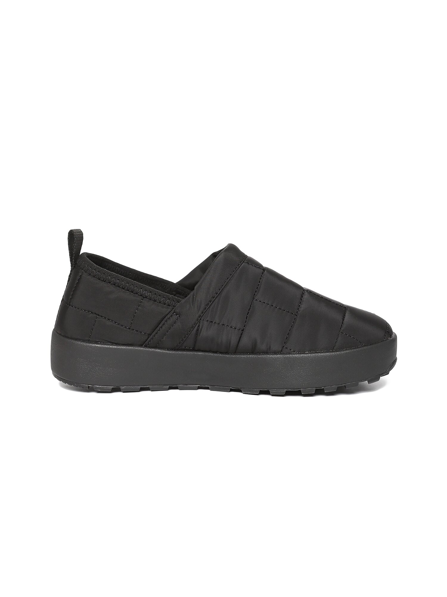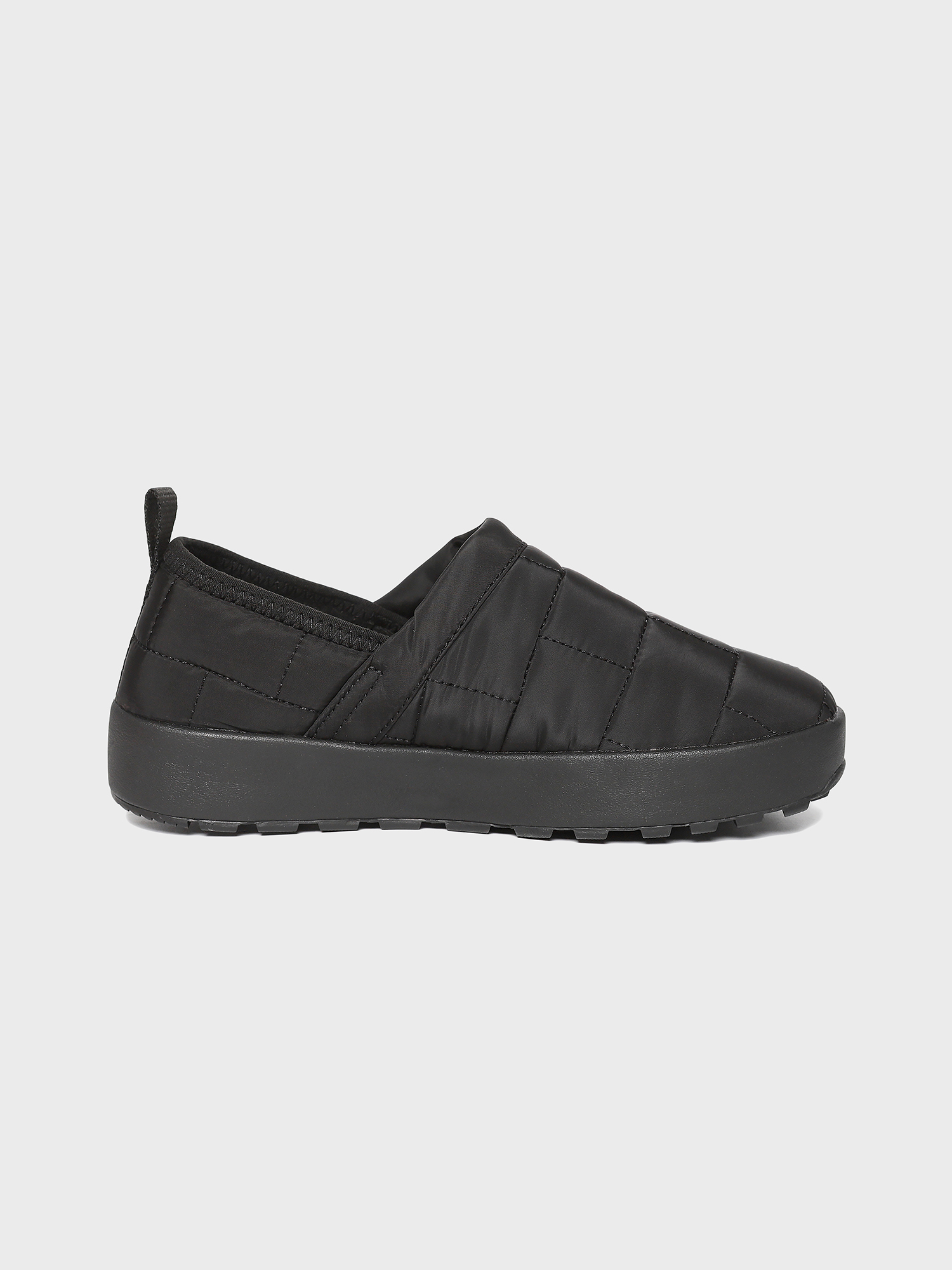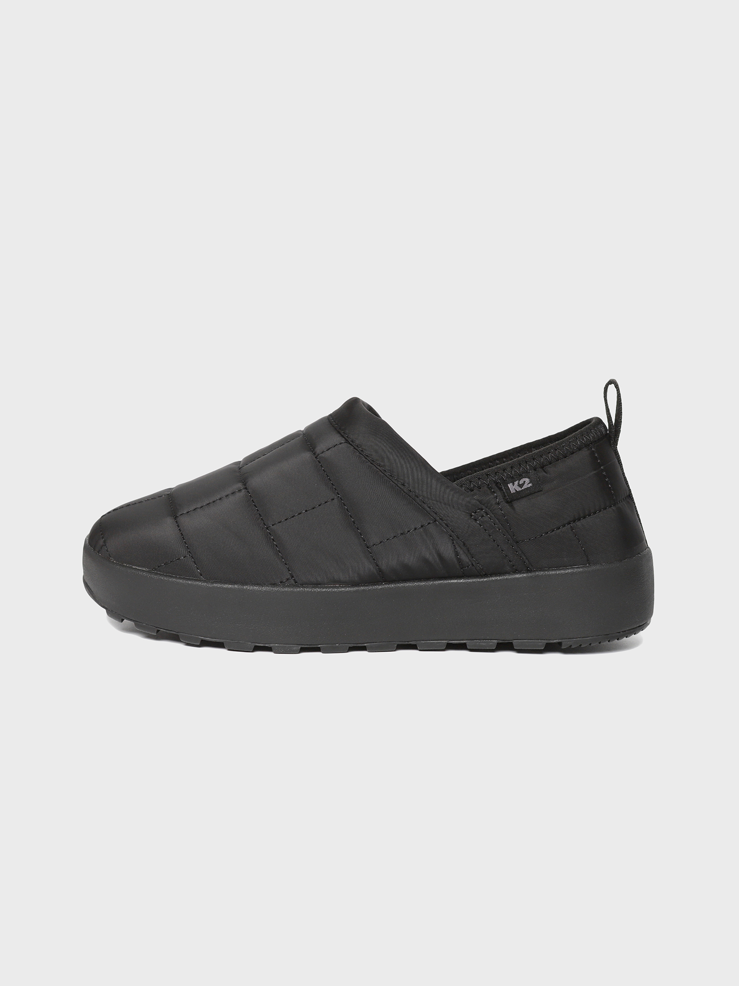 충전재가 있는 갑피에 퀄팅 디자인 포인트를 접목한 슬립온 워킹화
