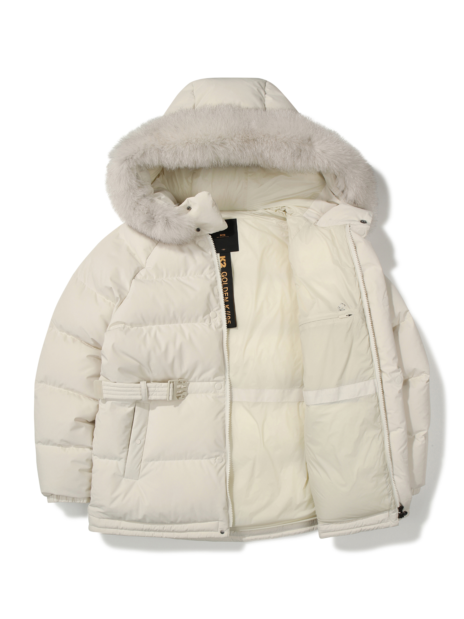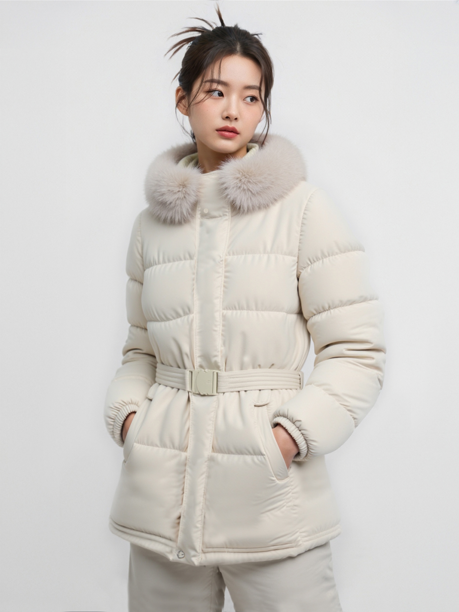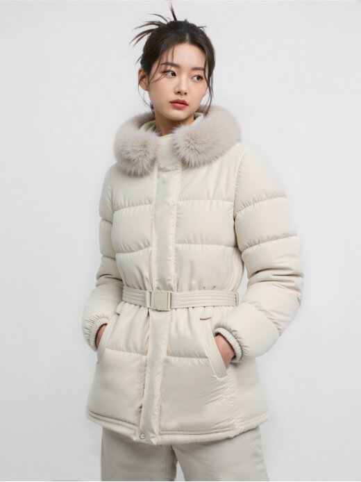 - 최고급 솜털 95% 구스 충전재를 사용해 가벼우면서도 따뜻한 여성 FOX 퍼 다운