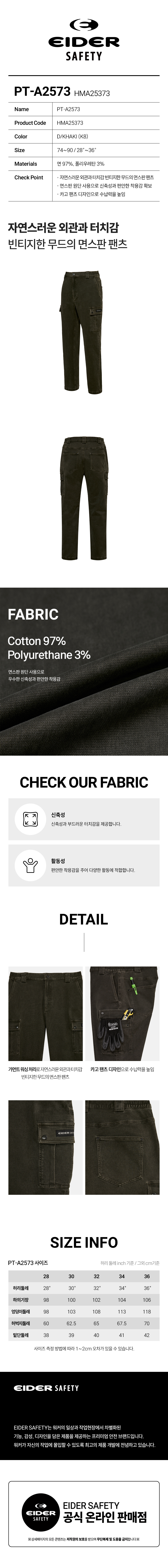 2. 면스판 원단 사용으로 신축성과 편안한 착용감 확보