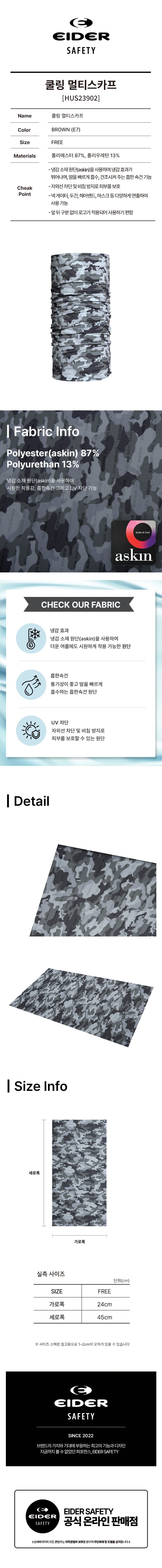 1. 냉감소재 원단(askin)를 사용하여 냉감효과가 뛰어나며, 땀을 빠르게 흡수, 건조시켜 주는 흡한 속건 기능