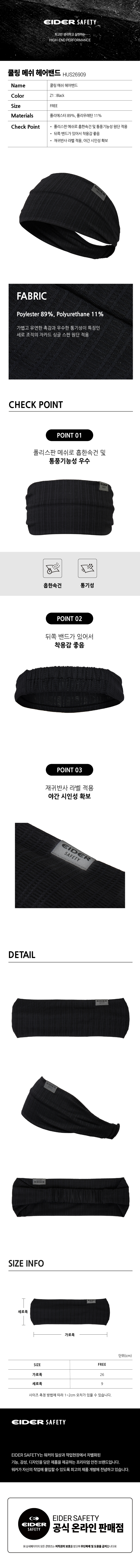 [통풍 기능성]쿨링 메쉬 헤어밴드 (Black)