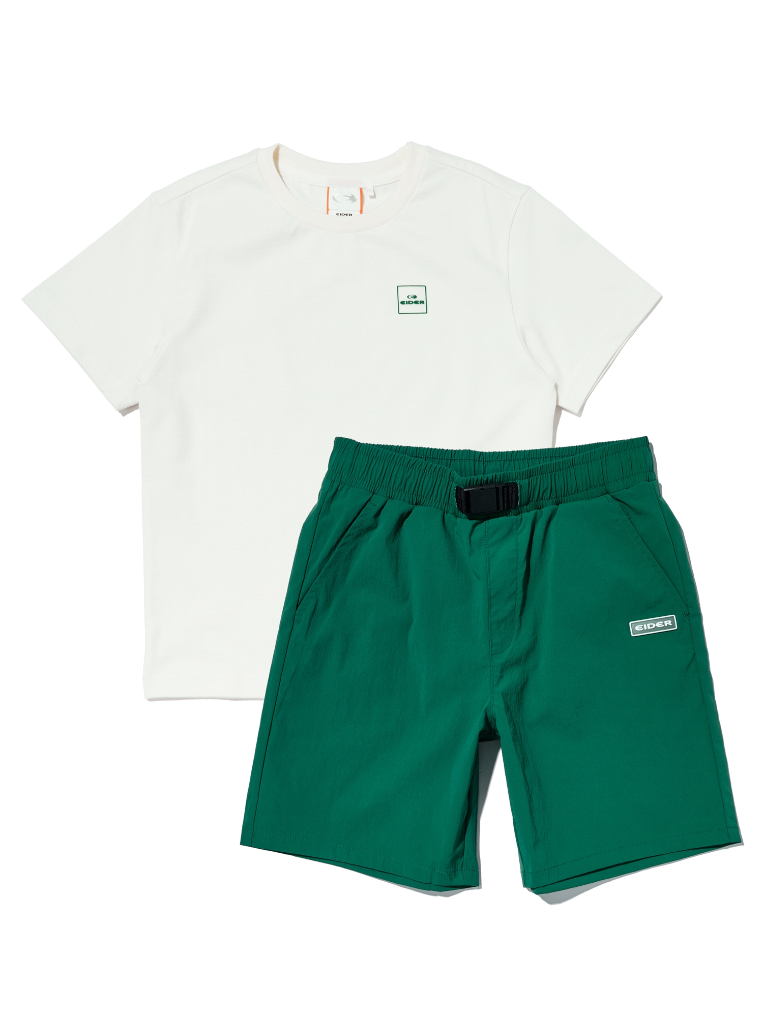 [키즈 UNI 그래픽 라운드 티셔츠 + 5부 우븐 팬츠 세트]