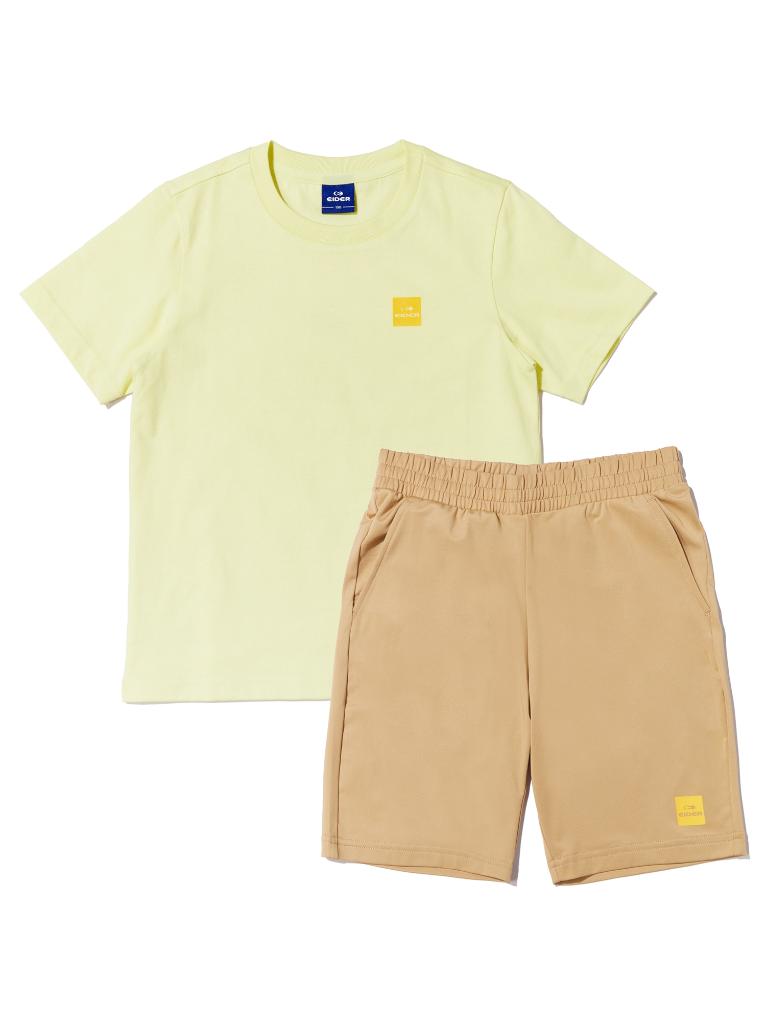 [키즈 UNI C/P 반팔 라운드 티셔츠 + 5부 팬츠 세트] -상의 시즌 테마 그래픽 프린트 적용 -상의 C/P 소재 적용으로 터치감이 부드럽고 청량함 -하의 신축성이 우수하고 세탁성이 용이한 냉감 폴리 스판 소재를 사용하여 활동성 강화 -하의 허리 전체 밴딩 사양으로, 편안한 착용이 가능함