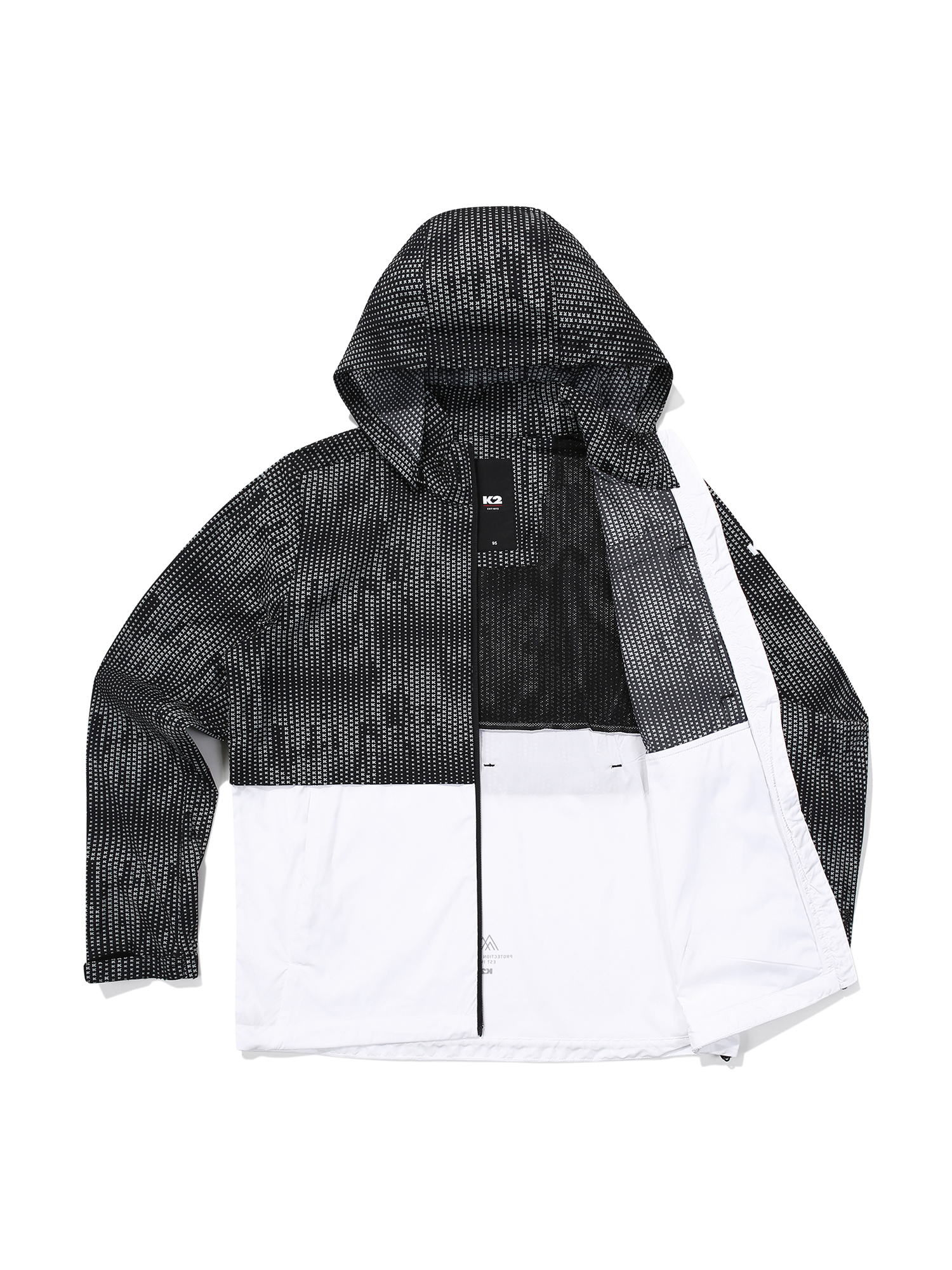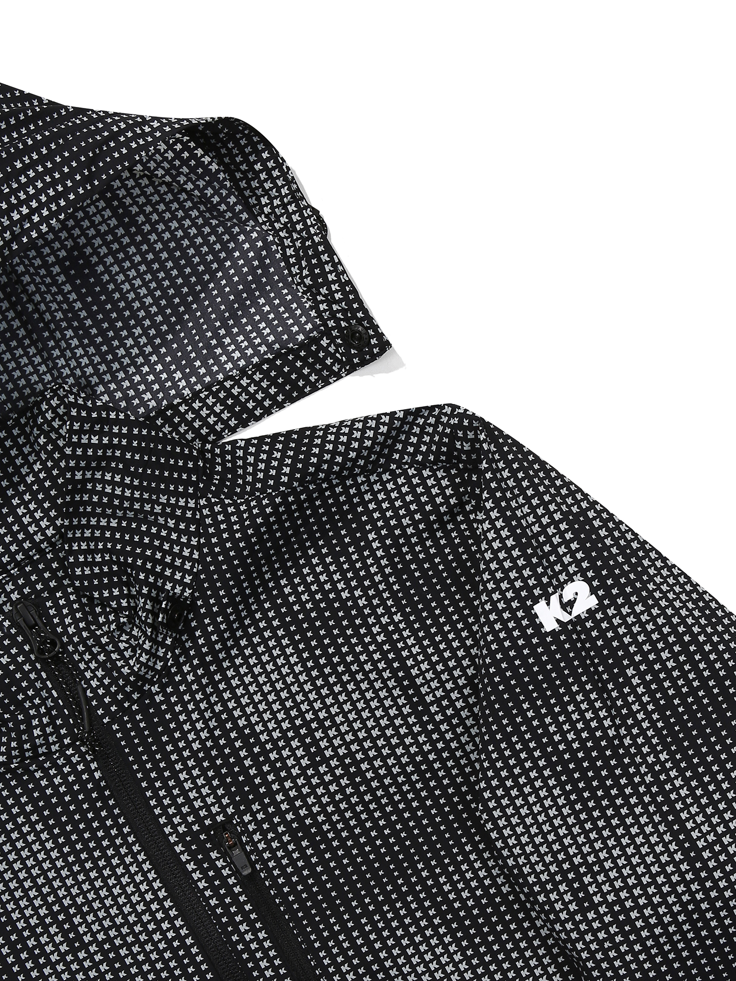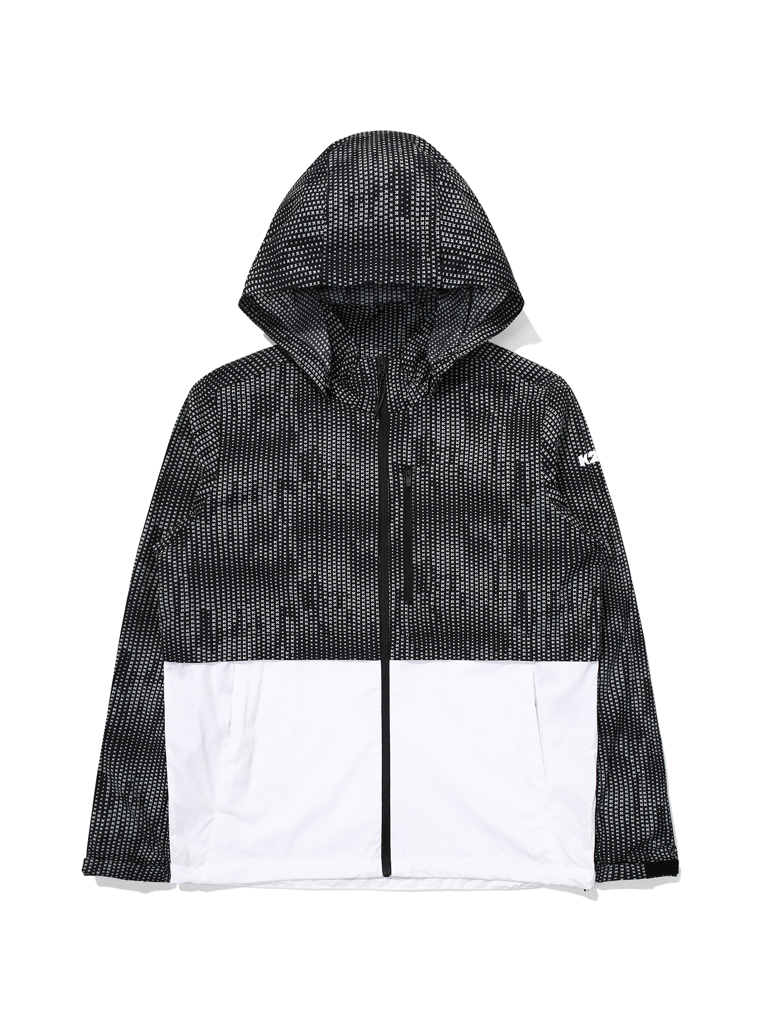 경량 스트레치 소재를 사용한 상하단 블럭형의 프린트 방풍 자켓(Carbon/BLUE, BLACK)