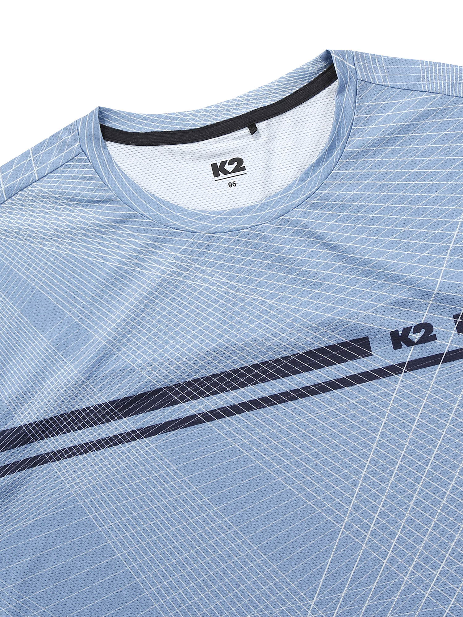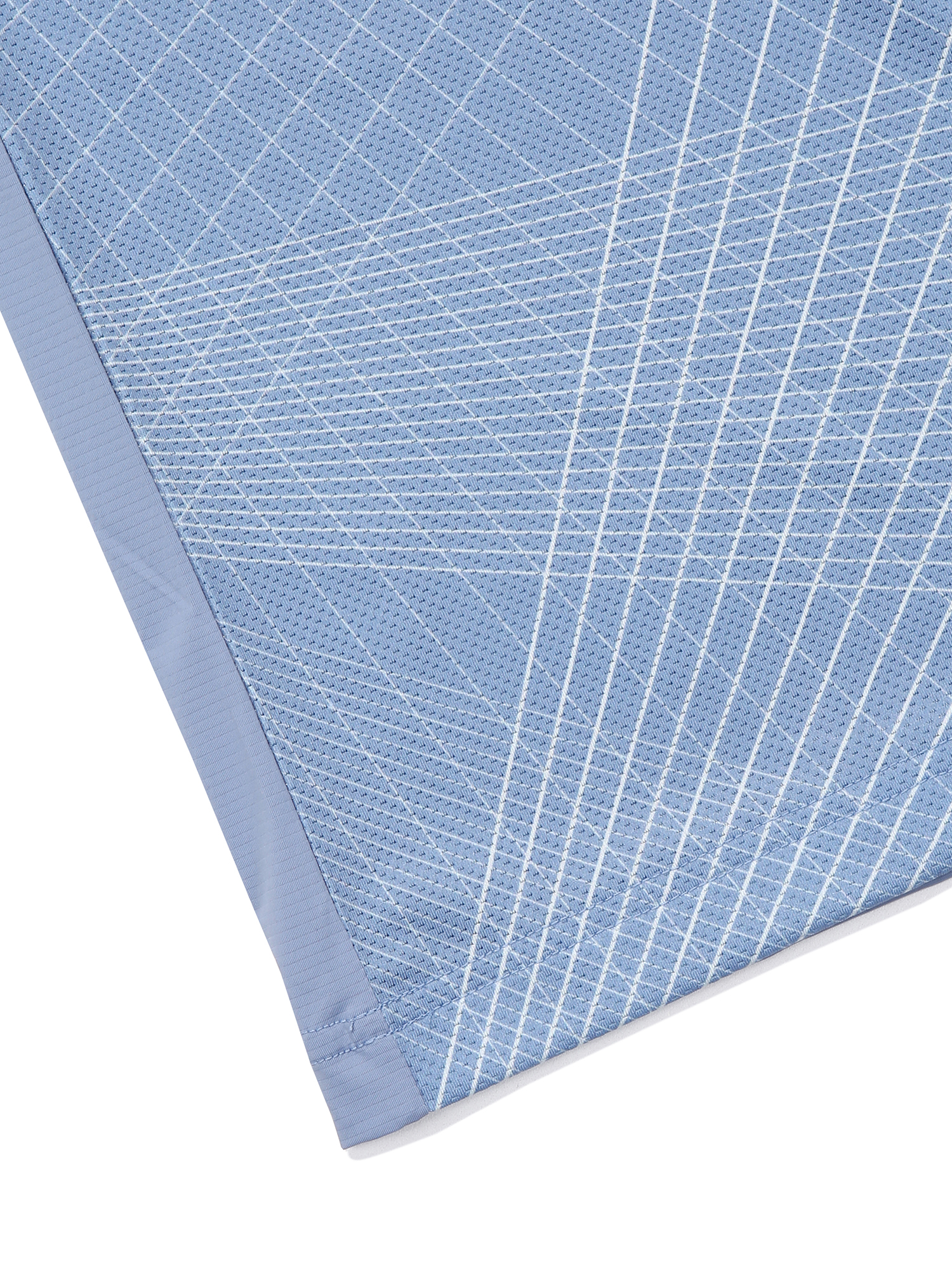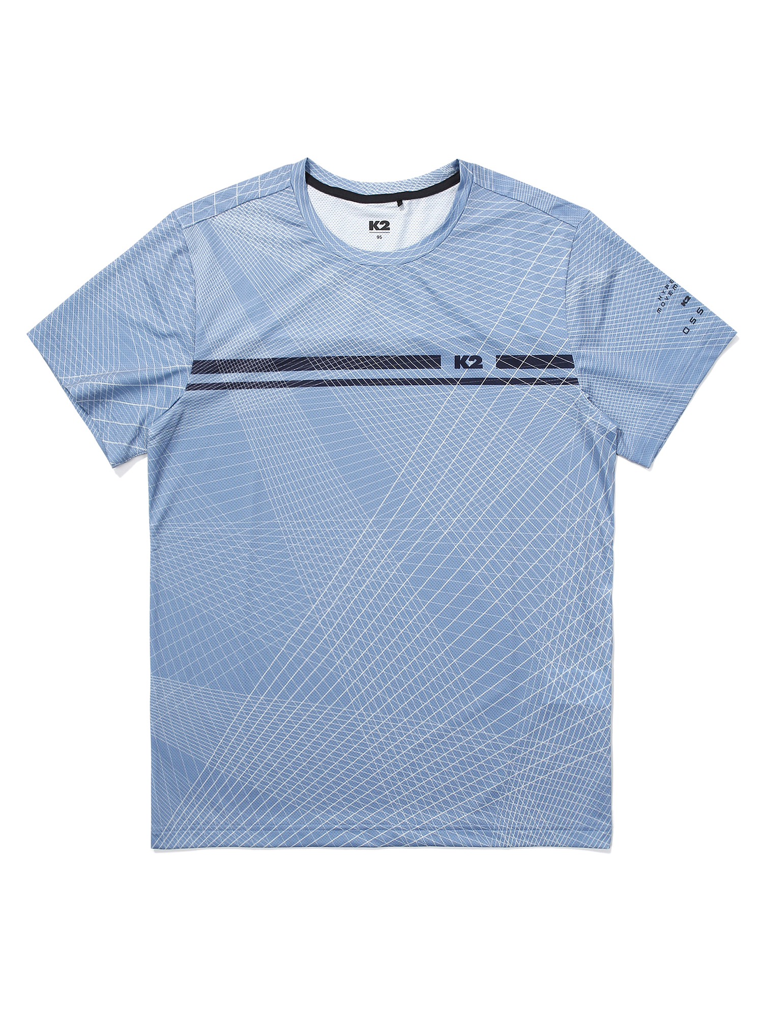 몸판, 소매 :Mesh 소재 + 기하학 Print = 통풍성 & 시선분산으로 체형 노출 보완