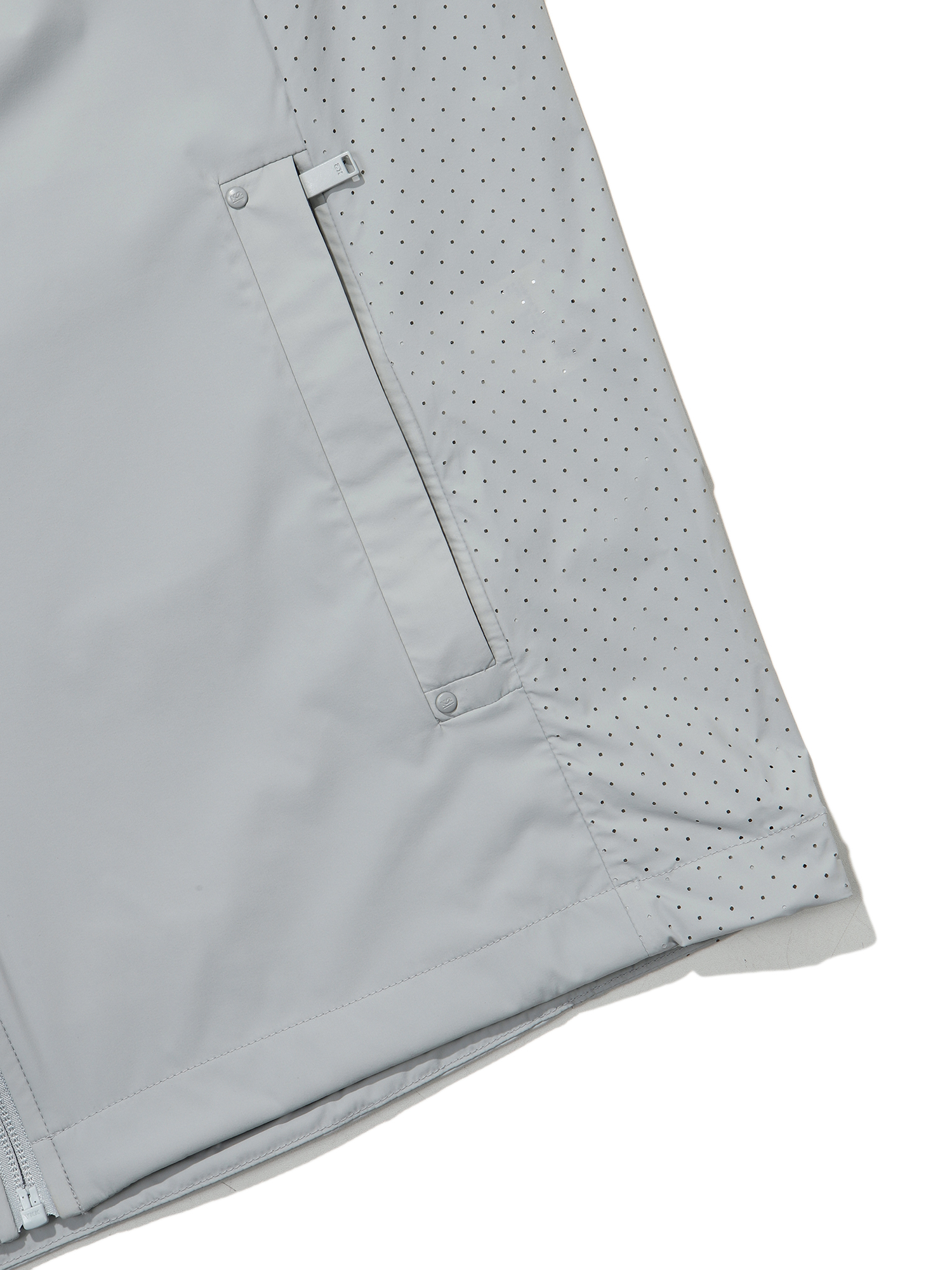 터치가 매끈하고 시원한 청량감이 느껴지는 이태리 수입 나일론 스판 소재가 적용되어 여행 및 일상에서 착용 하기 좋은 자켓 / 사이바 타공으로 통기성 부여