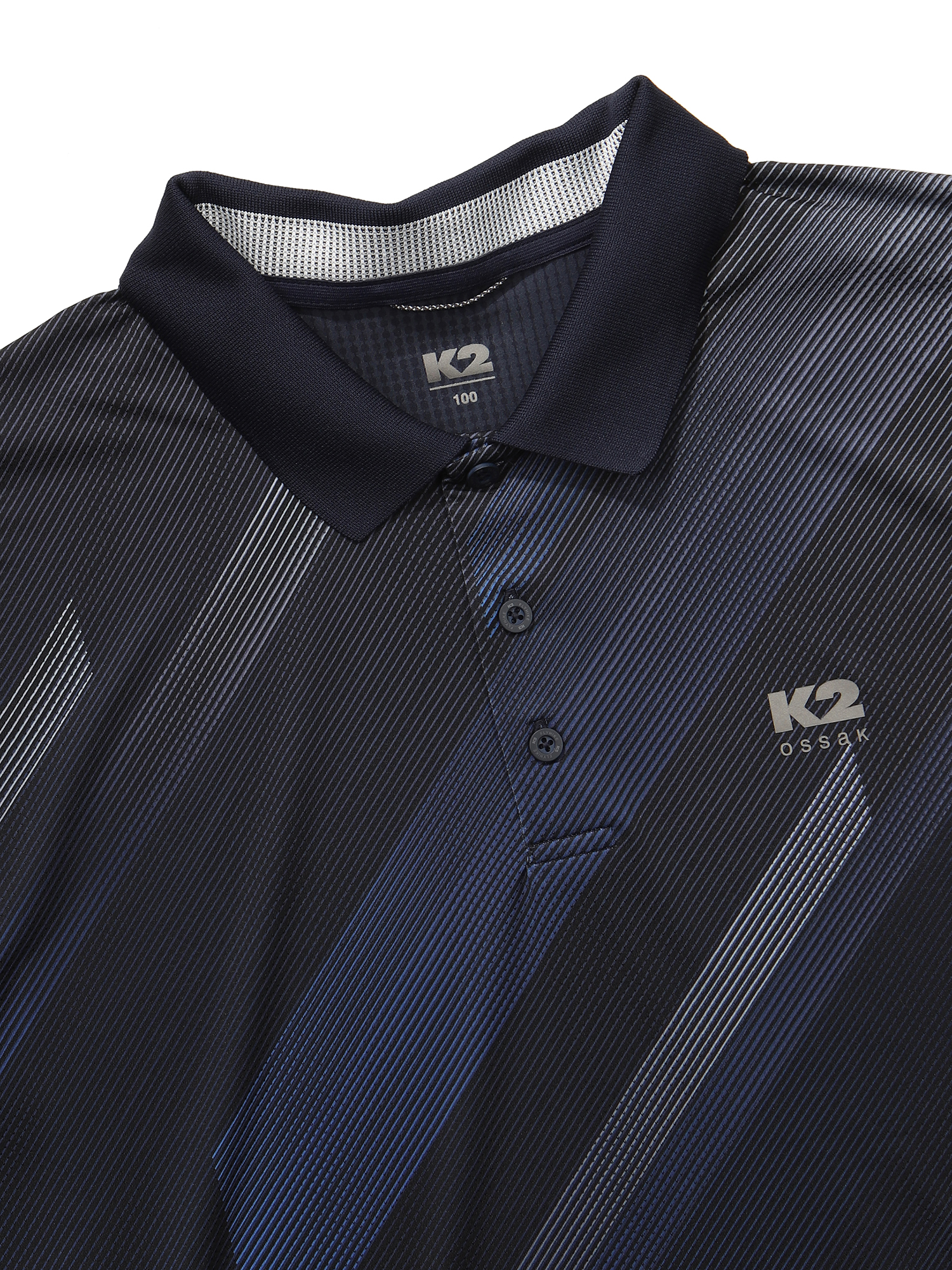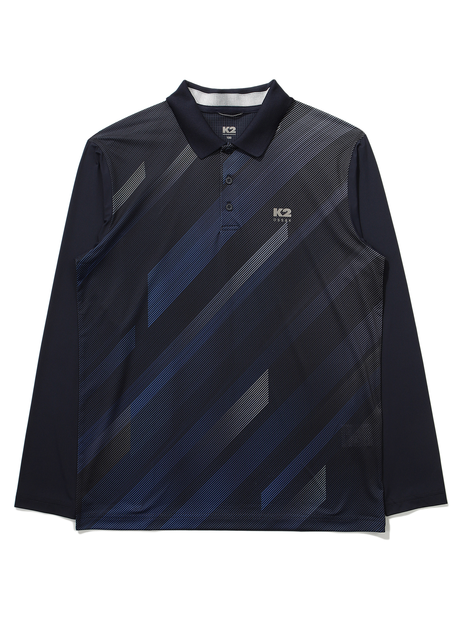 오싹(OSSAK) 기하학 패턴 긴팔 폴로 티셔츠 / 몸판:메쉬 + 기하학 패턴 프린트 = 통기성 & 시선분산으로 체형 노출 보완 / 소매, 등판:냉감 하이게이지 + MEGA PCM 프린트 = 접촉 냉감 & 보다 강해진 흡열 기능(기존 PCM 대비 3배의 흡열력) / 냉감 요꼬 카라를 적용해 뒷 목에 접촉시 시원한 착장감을 배로 제공