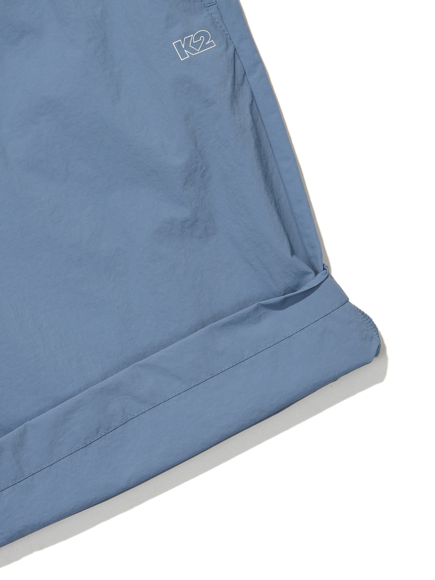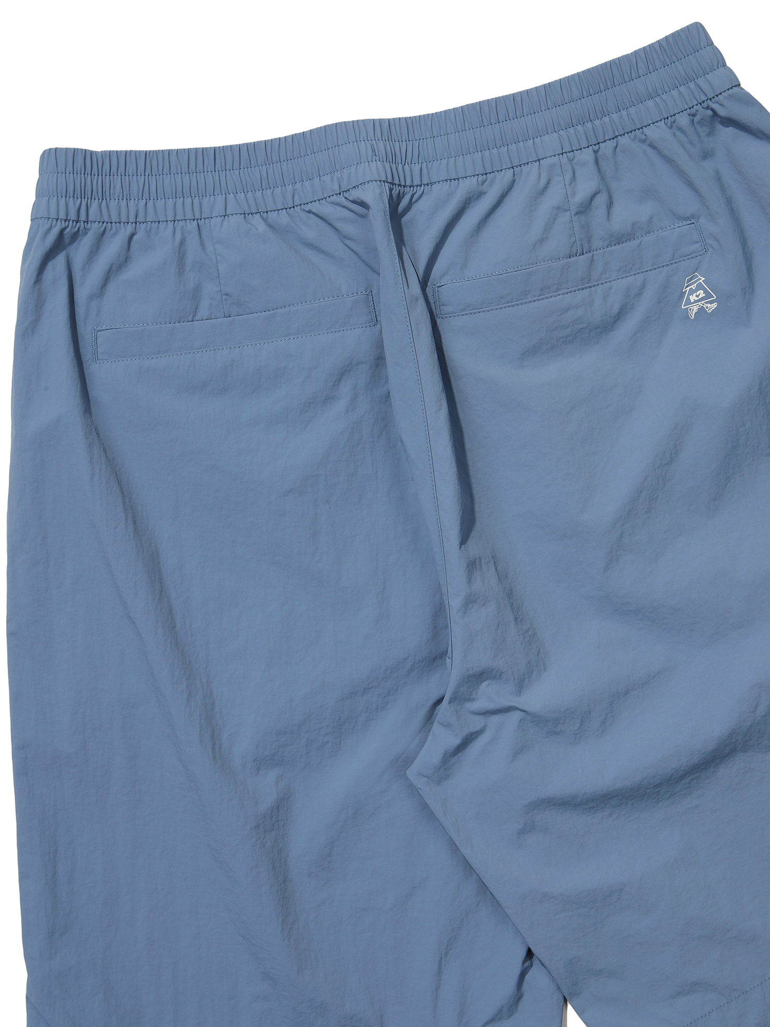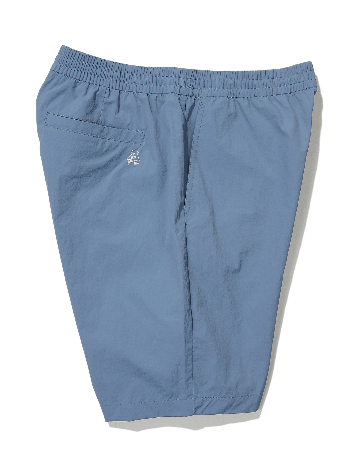 나일론 타슬란 계열의 소재를 사용해 내추럴한 반바지 팬츠 / 뒷포켓 그래픽 프린트 요소 포인트