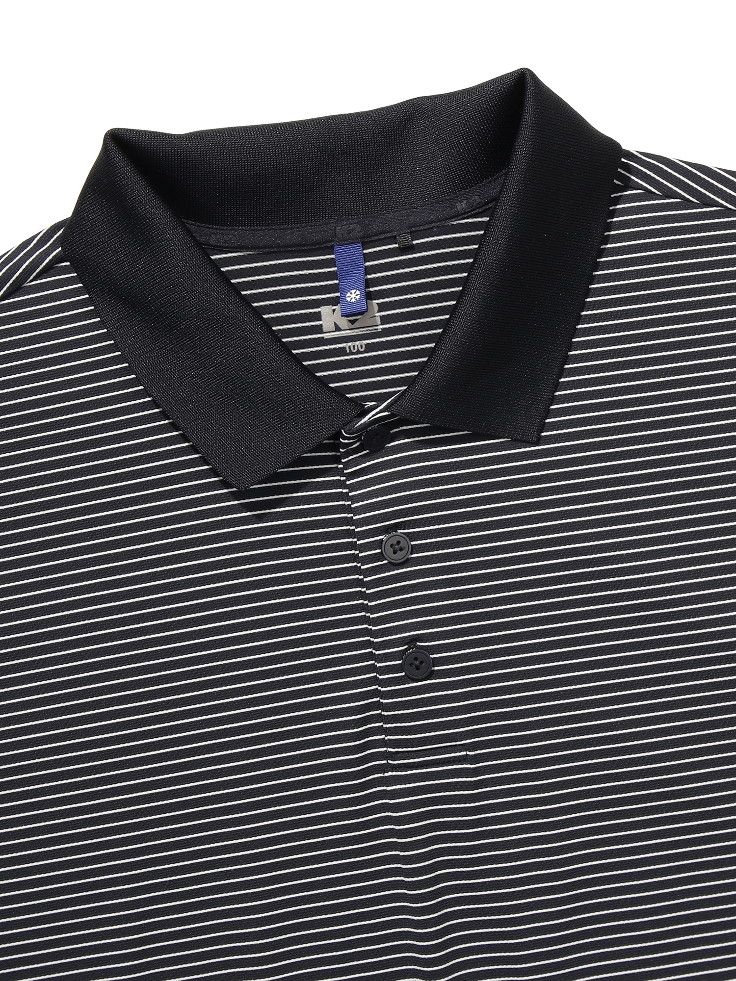 메쉬 조직의 원단과 핀스트라이프를 사용한 폴로 티셔츠 / 초냉감 원사로 영구적 냉감성 제공 / 쿨맥스 요꼬 사용