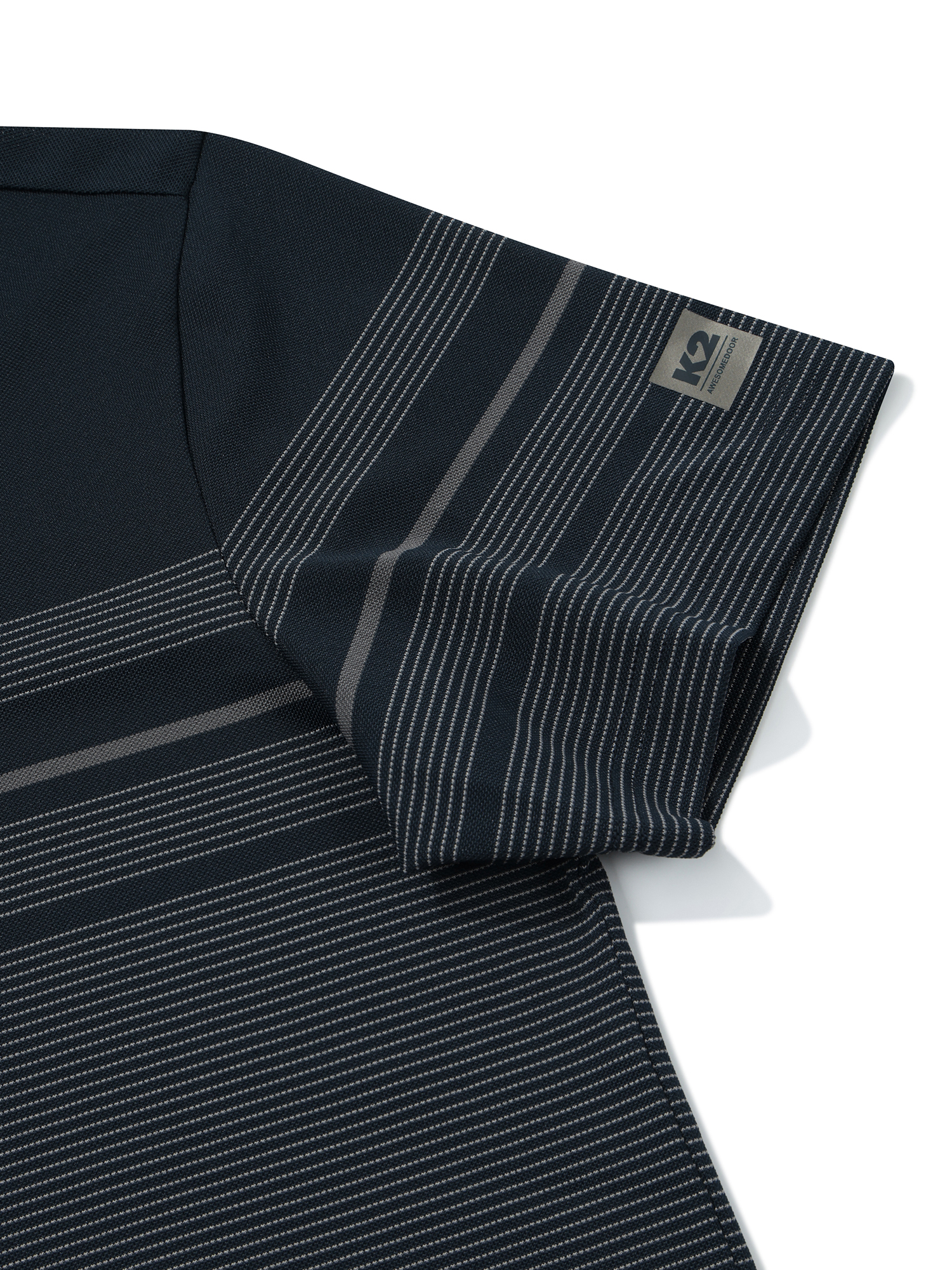 - 은은한 스트라이프 패턴이 깔려있는 선염 반팔 폴로 티셔츠