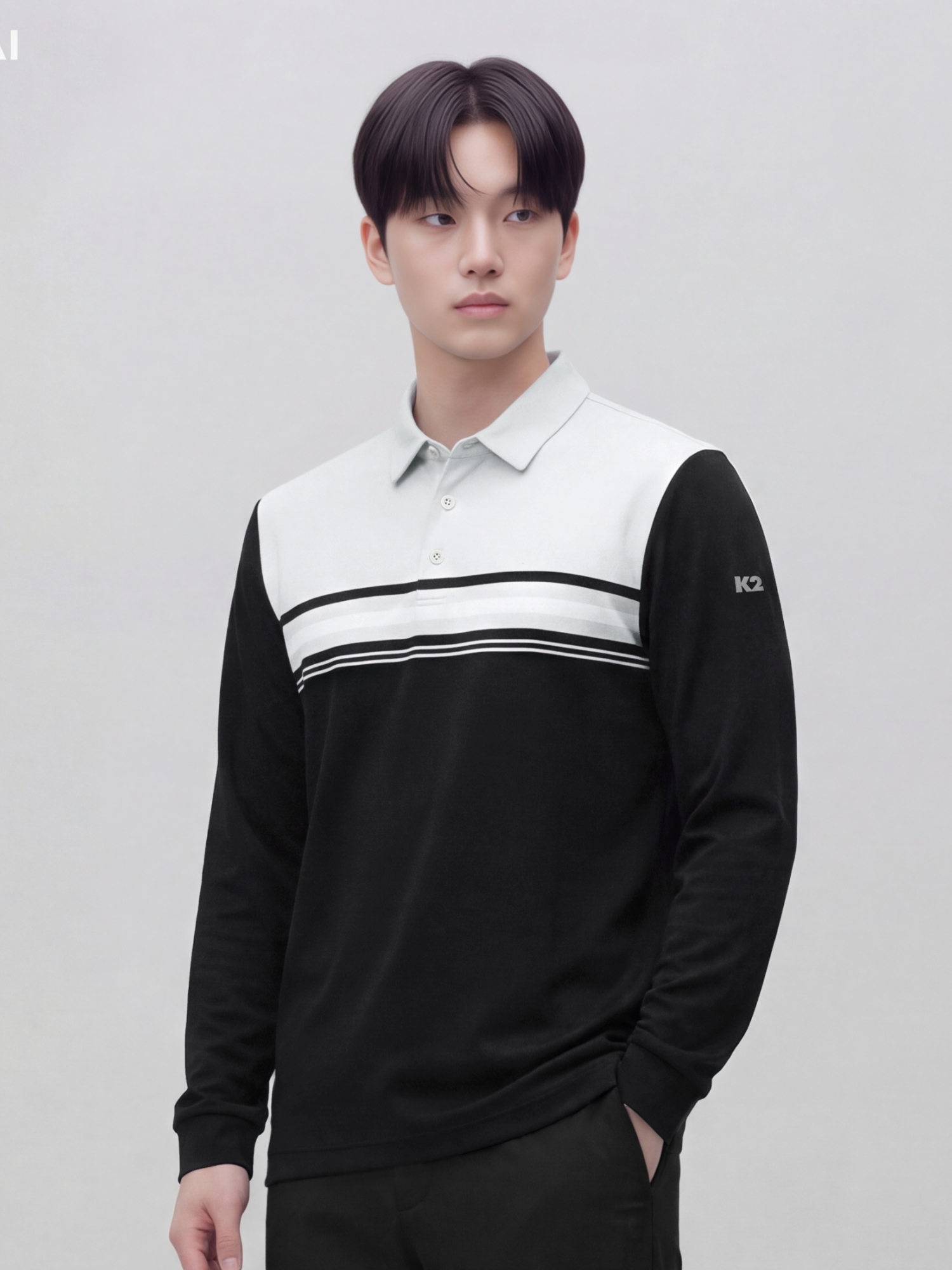 [배색 선염 디테일이 포인트로 적용된 긴팔 선염 폴로 티셔츠]
