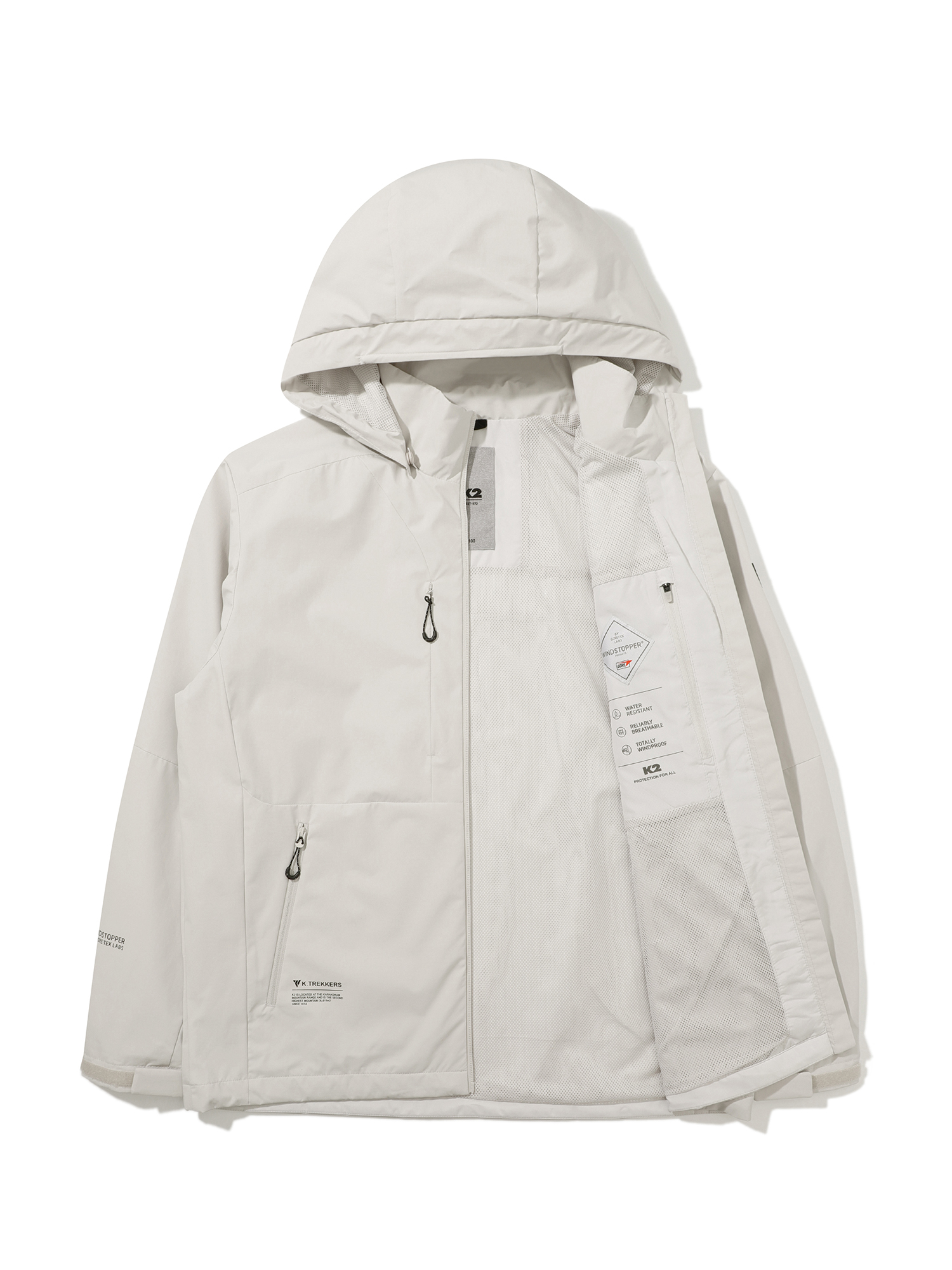 K2 독점 GORE W/S 2L 소재를 사용한 트레킹 방풍 자켓 / KTR 만의 유니크하고 역동적인 절개라인을 접목한 스타일리쉬한 디자인 / 통기성이 매우 우수한 매쉬 안감을 사용하여 편안하게 착용 가능 / 후드 탈부착형
