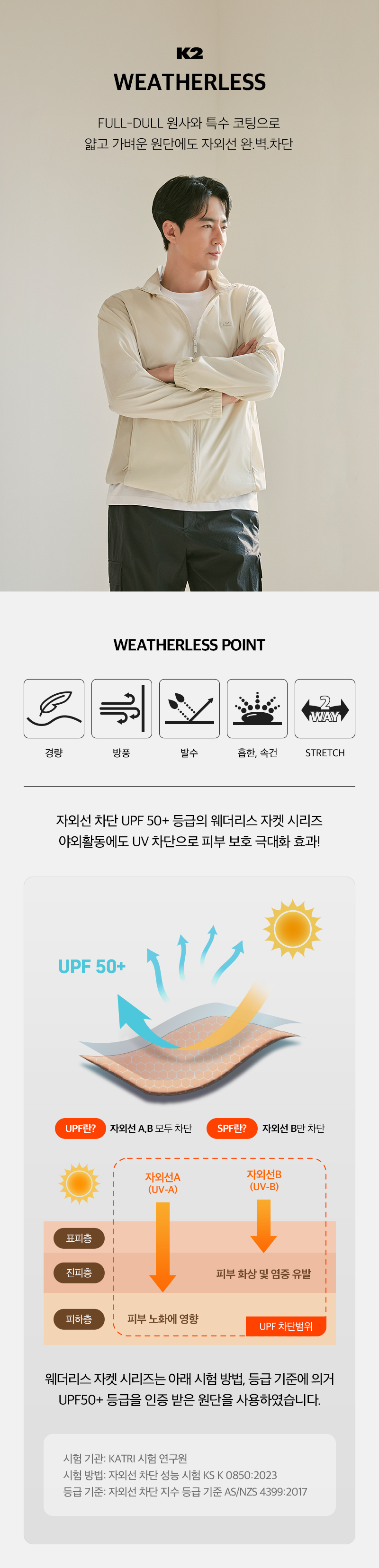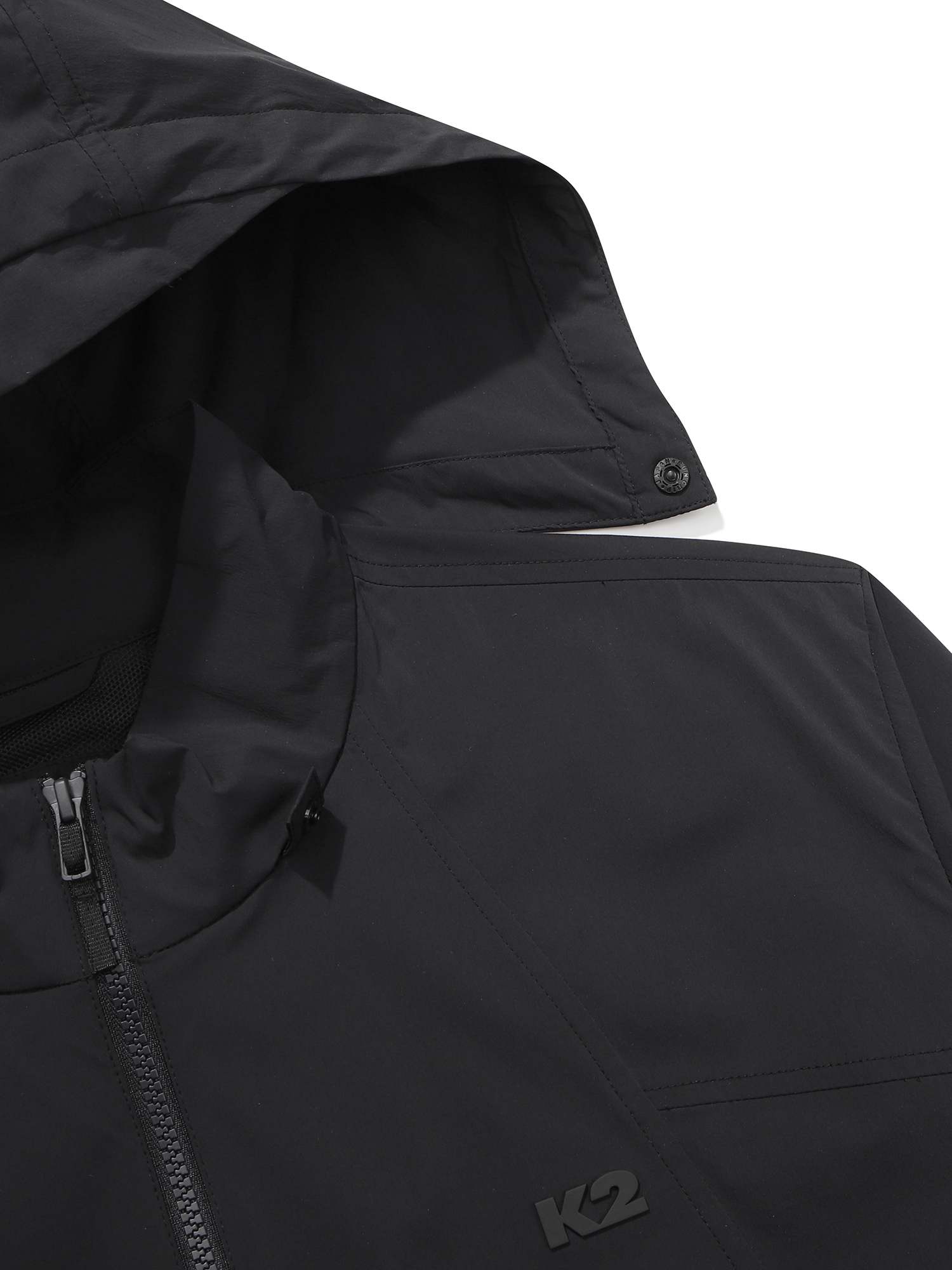 특수 가공 처리된 UV 차단 소재를 사용하여 피부 노화와 트러블을 예방하고 부드러운 코팅이 차가운 바람을 막아주는 바람막이 자켓 / 후드 챙 디테일 포인트가 적용된 후드는 탈부착으로 적용됨