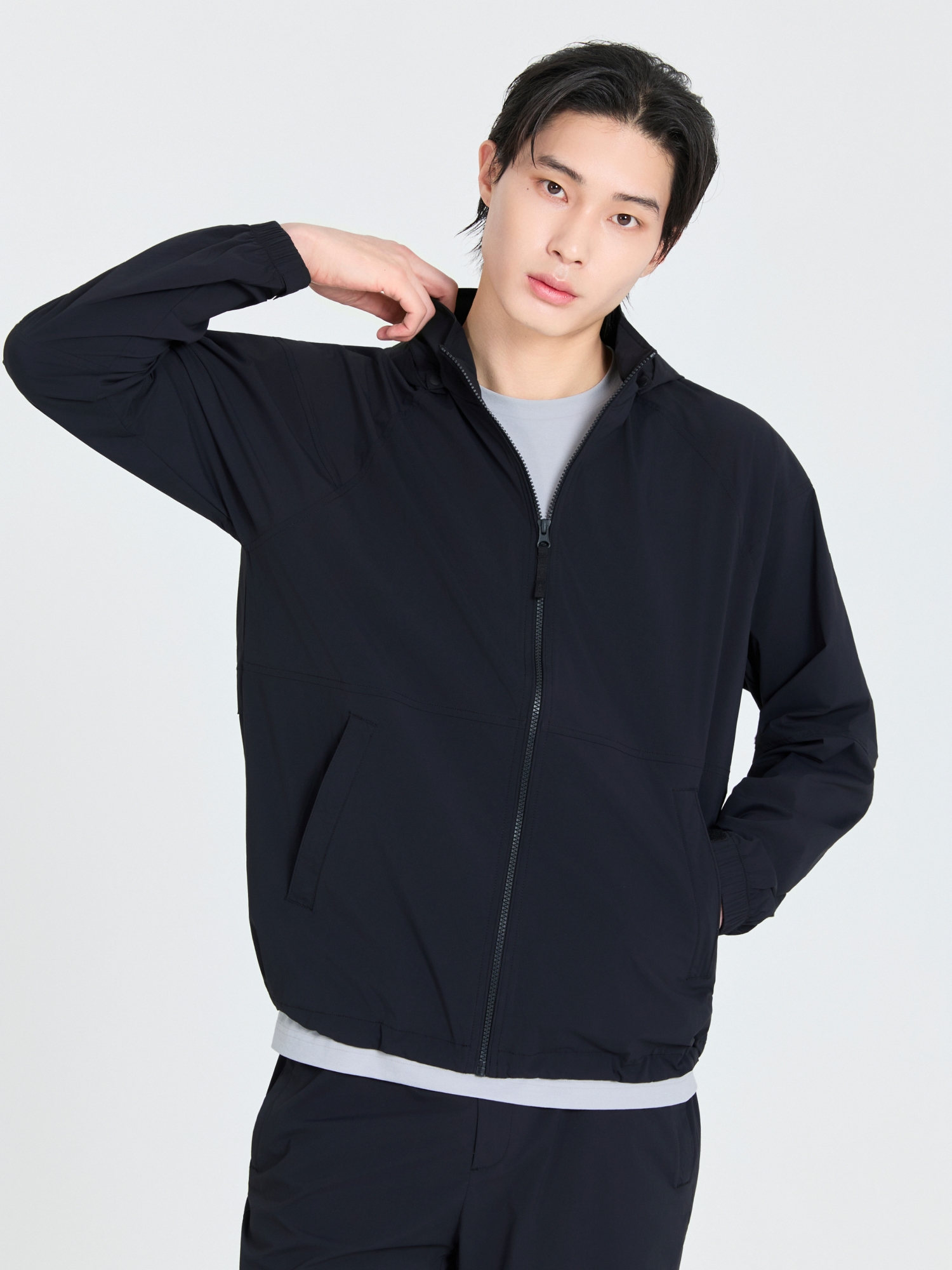 - 특수 가공 처리된 UV 차단 소재를 사용하여 피부 노화와 트러블을 예방하고 부드러운 코팅이 차가운 바람을 막아주는 스트레치 바람막이 자켓