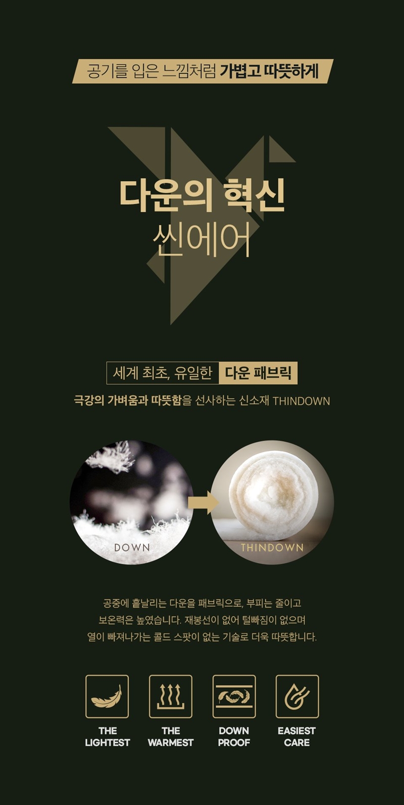 편안한 착용감을 갖는 프리미엄 슬림 다운