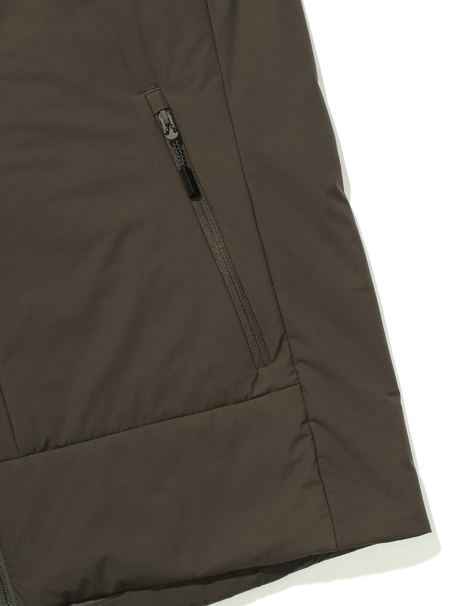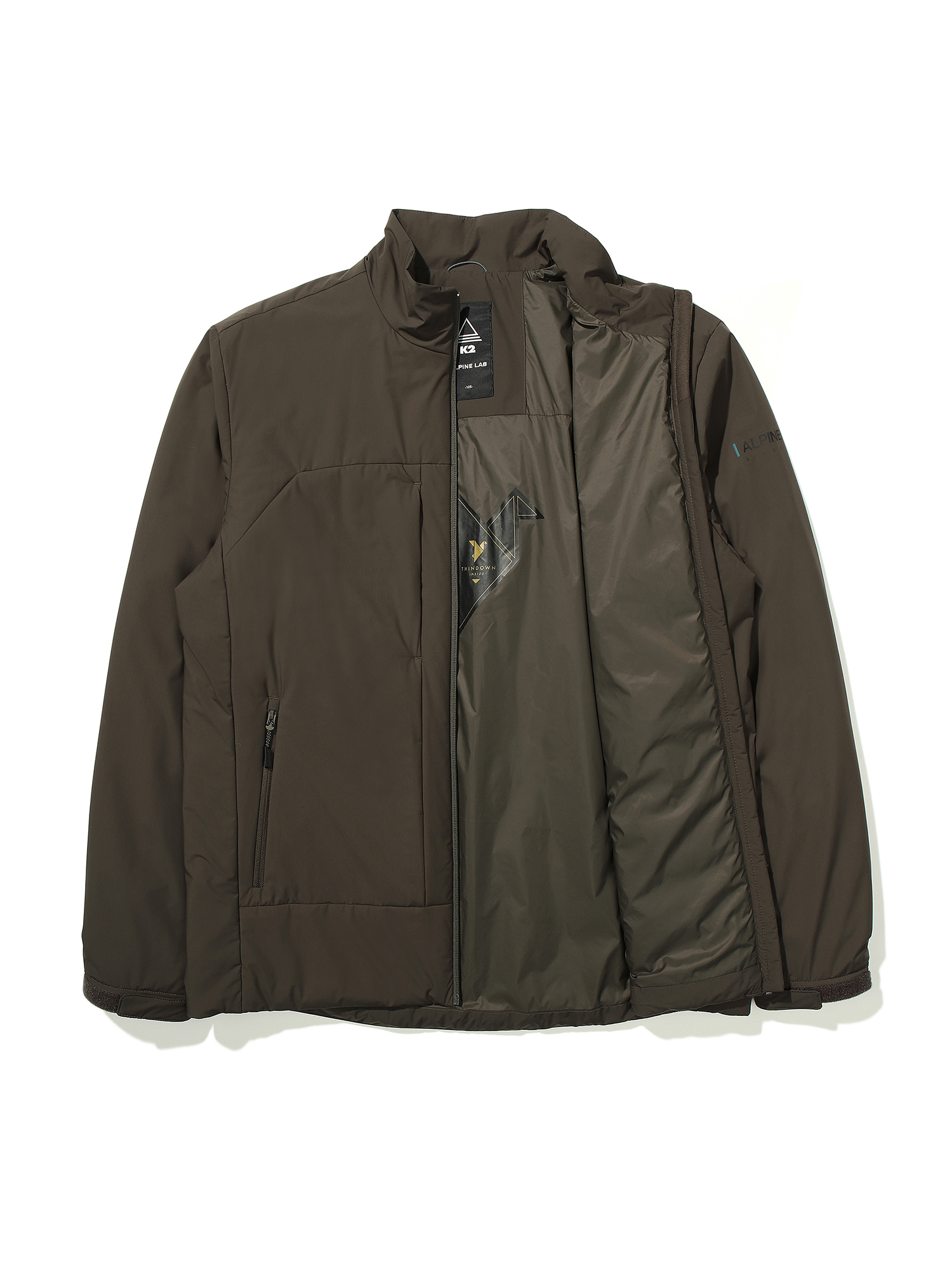 수시로 변화하는 아웃도어 필드의 컨디션, 그 환경을 컨트롤하는 초경량 내피형 충전 자켓 / 12D 초경량 나일론 스판 소재로 매우 얇고 부드러운 핸드필 제공 / 몸 앞판 이태리 씬다운 30g 버전을 충전해 아주 얇지만 강한 보온성을 제공 / 얇은 두께감으로 내피용으로 활용 가능 / 소매와 등판은 투습력과 속건성이 강한 패딩 충전 / 체스트 포켓 디테일로 수납성 강화