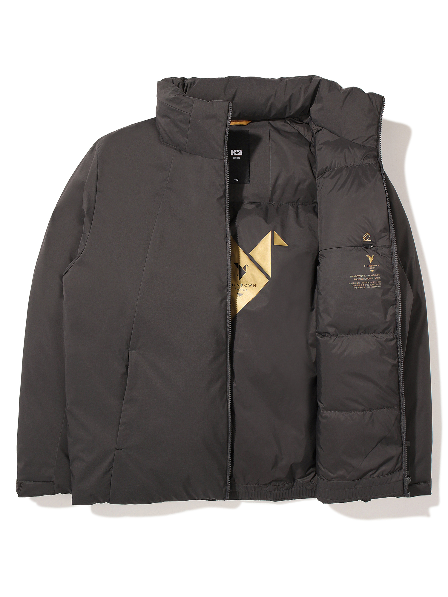- 이태리 씬다운이 등판 부분에 적용, 전체로는 덕 다운 80:20 충전 사양