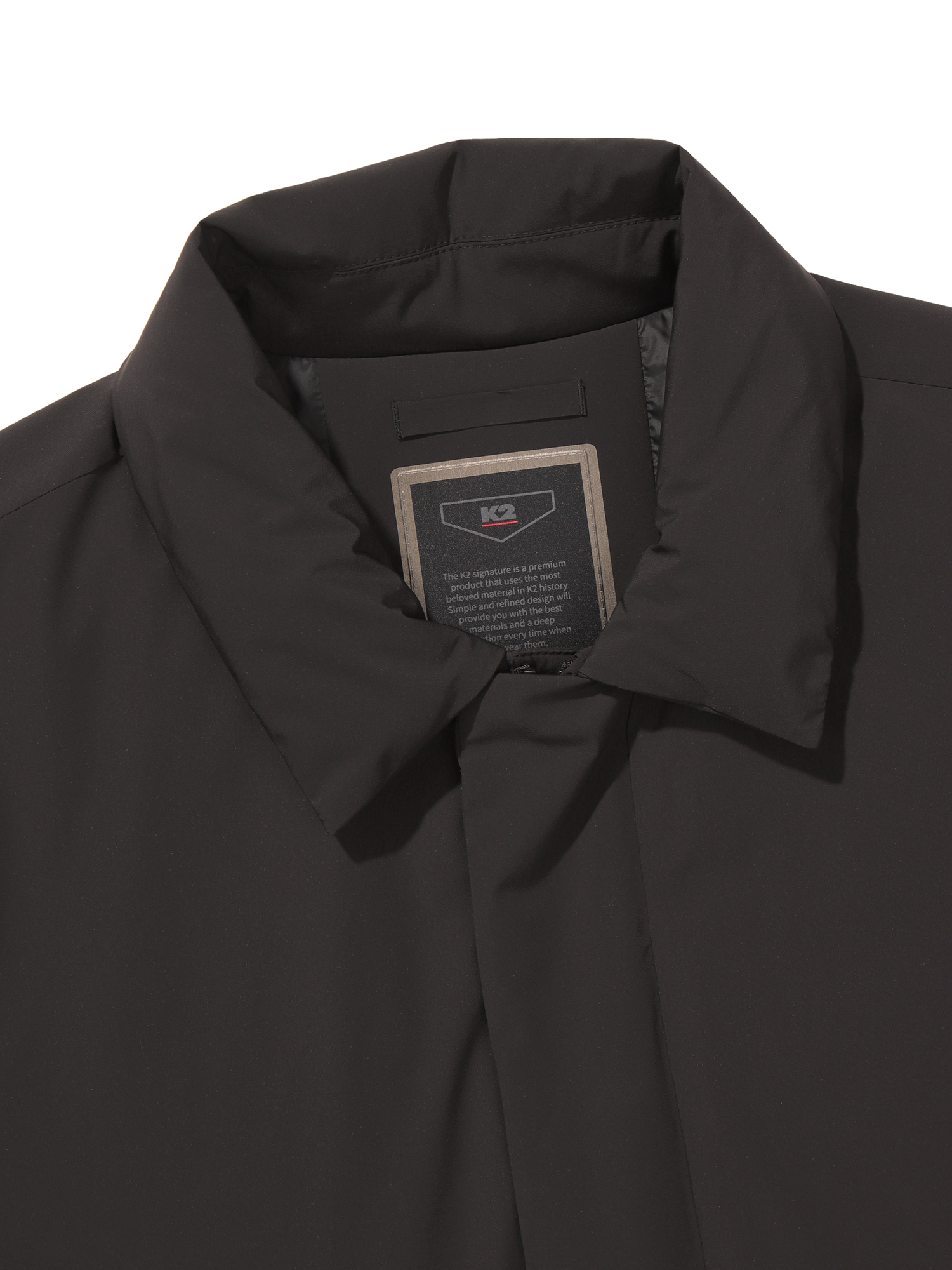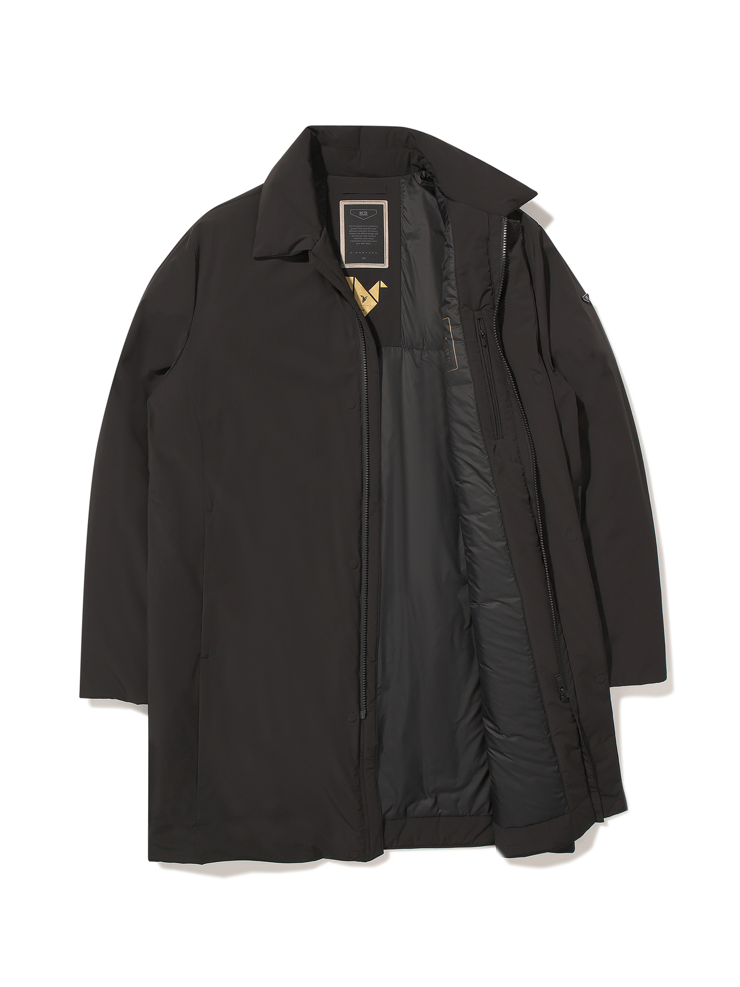 - 셔츠 에리에 깔끔한 디자인의 코트형 다운 자켓